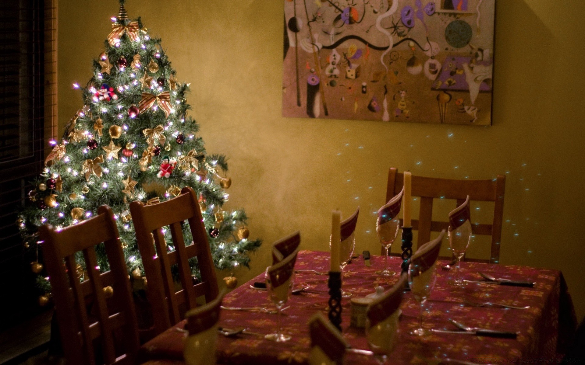 Abete rosso in una ghirlanda luminosa e nevica intorno