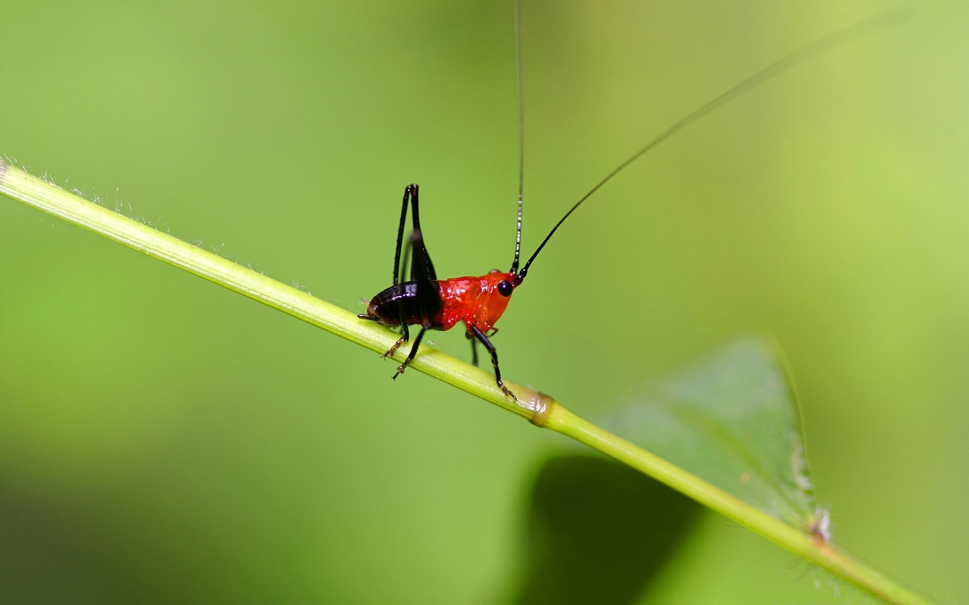 Fauna selvatica. Insetto con lunghi baffi su un filo d'erba