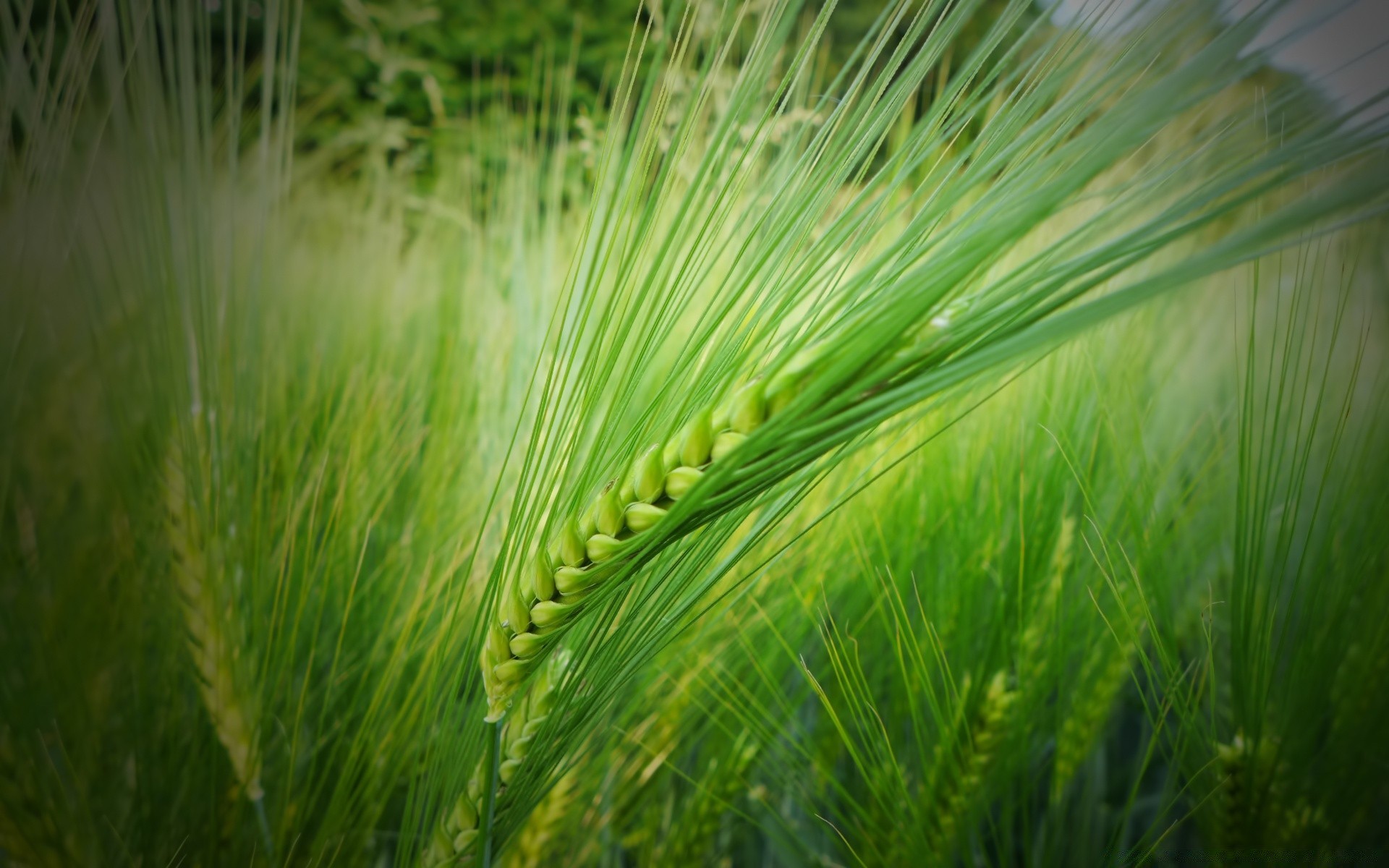 Sagome di spighette su uno sfondo sfocato al tramonto