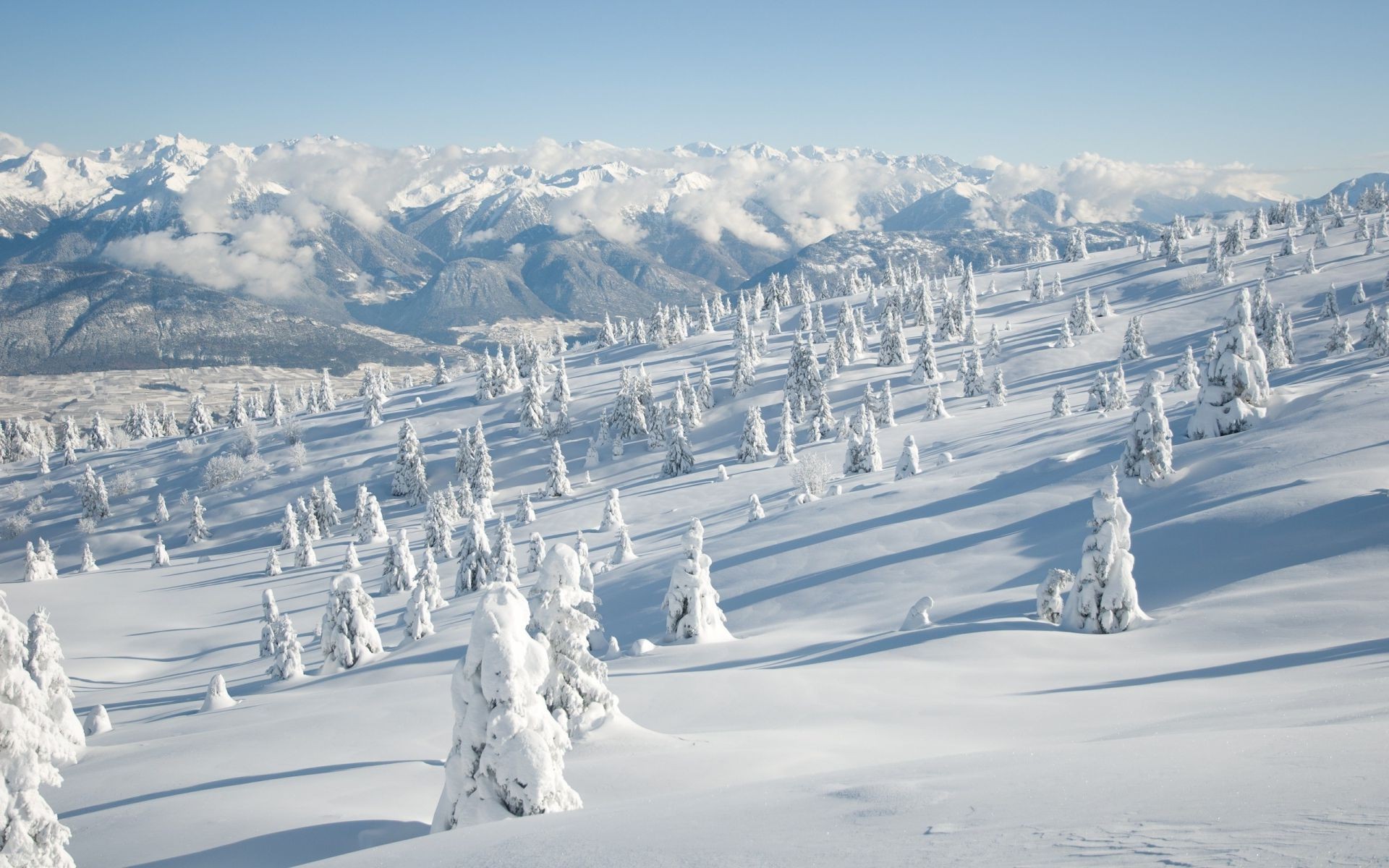 Montagne e alberi coperti di neve