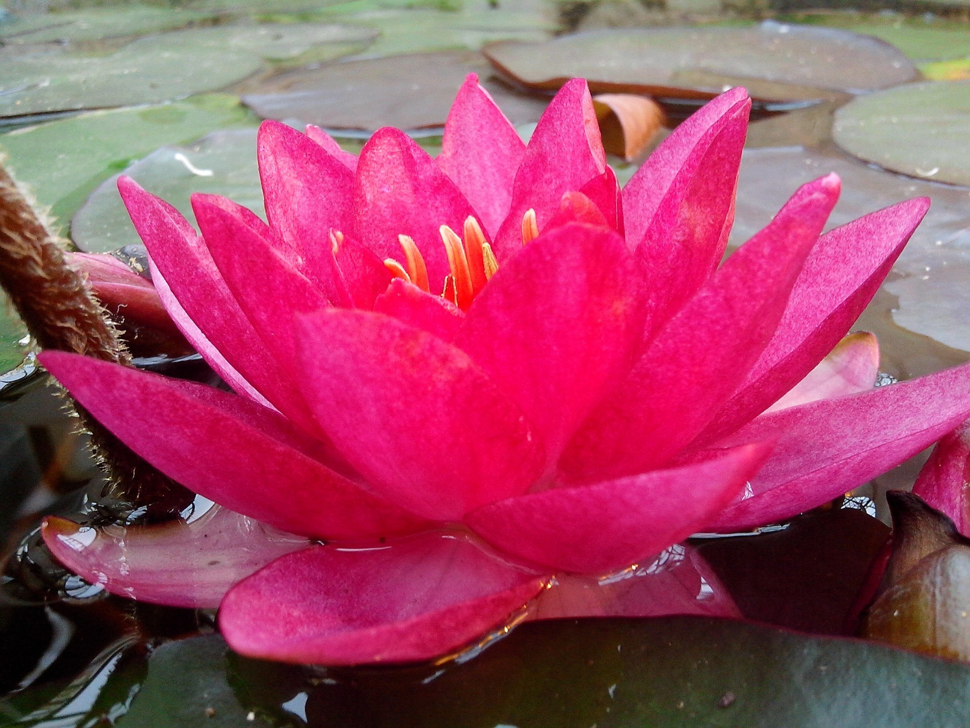 Grande fiore di loto rosa in primo piano su sfondo di foglie