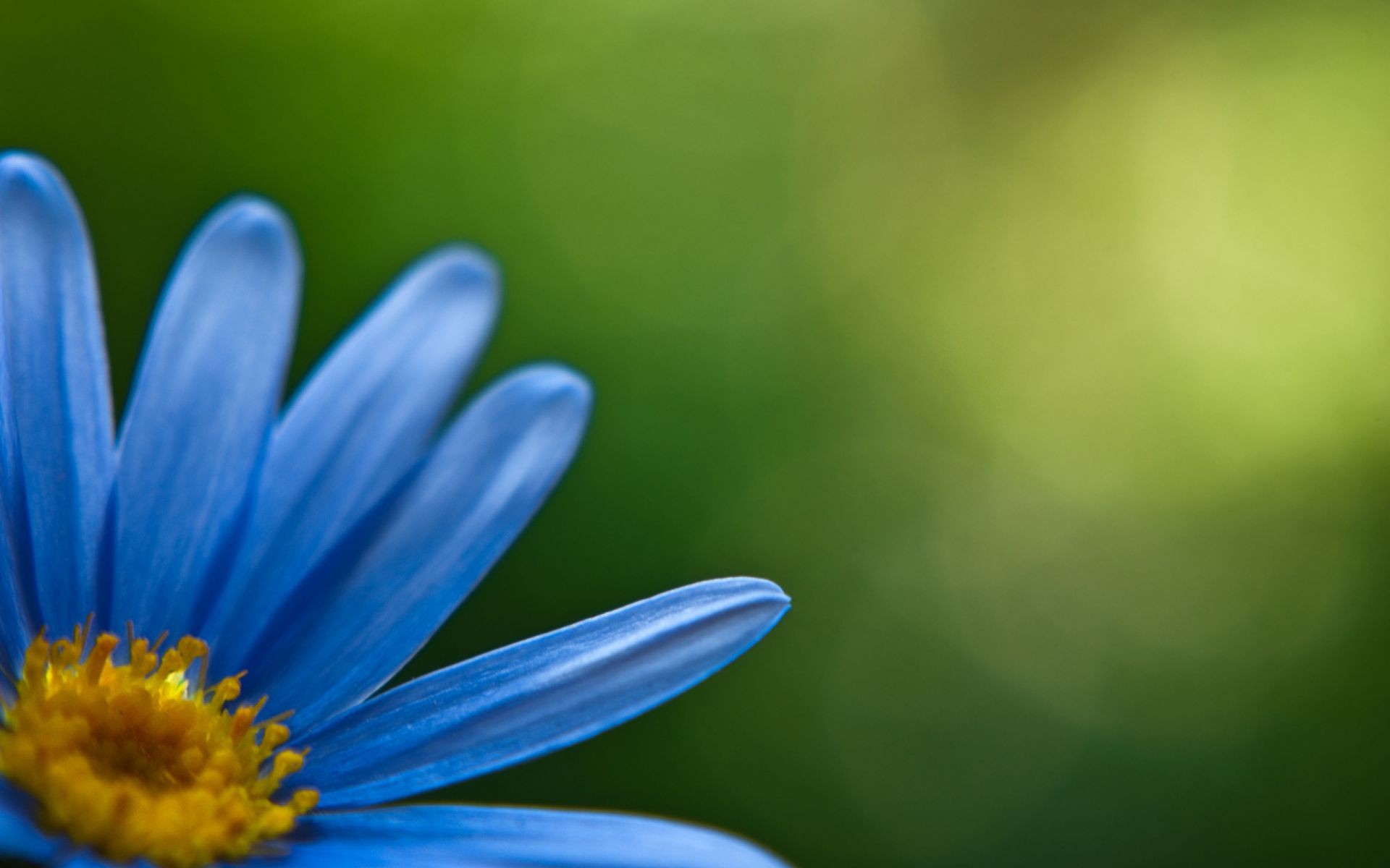 Parte del fiore di Margherita nei toni del blu su sfondo verde