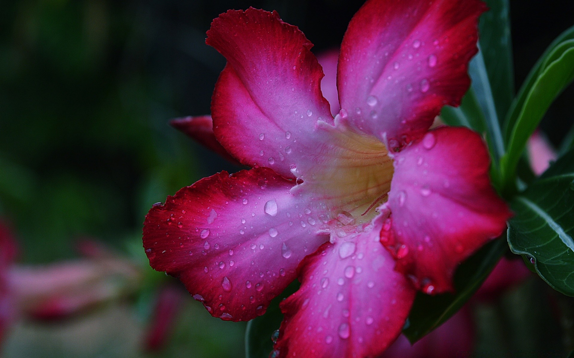 Bellissimo fiore rosa con gocce di rugiada