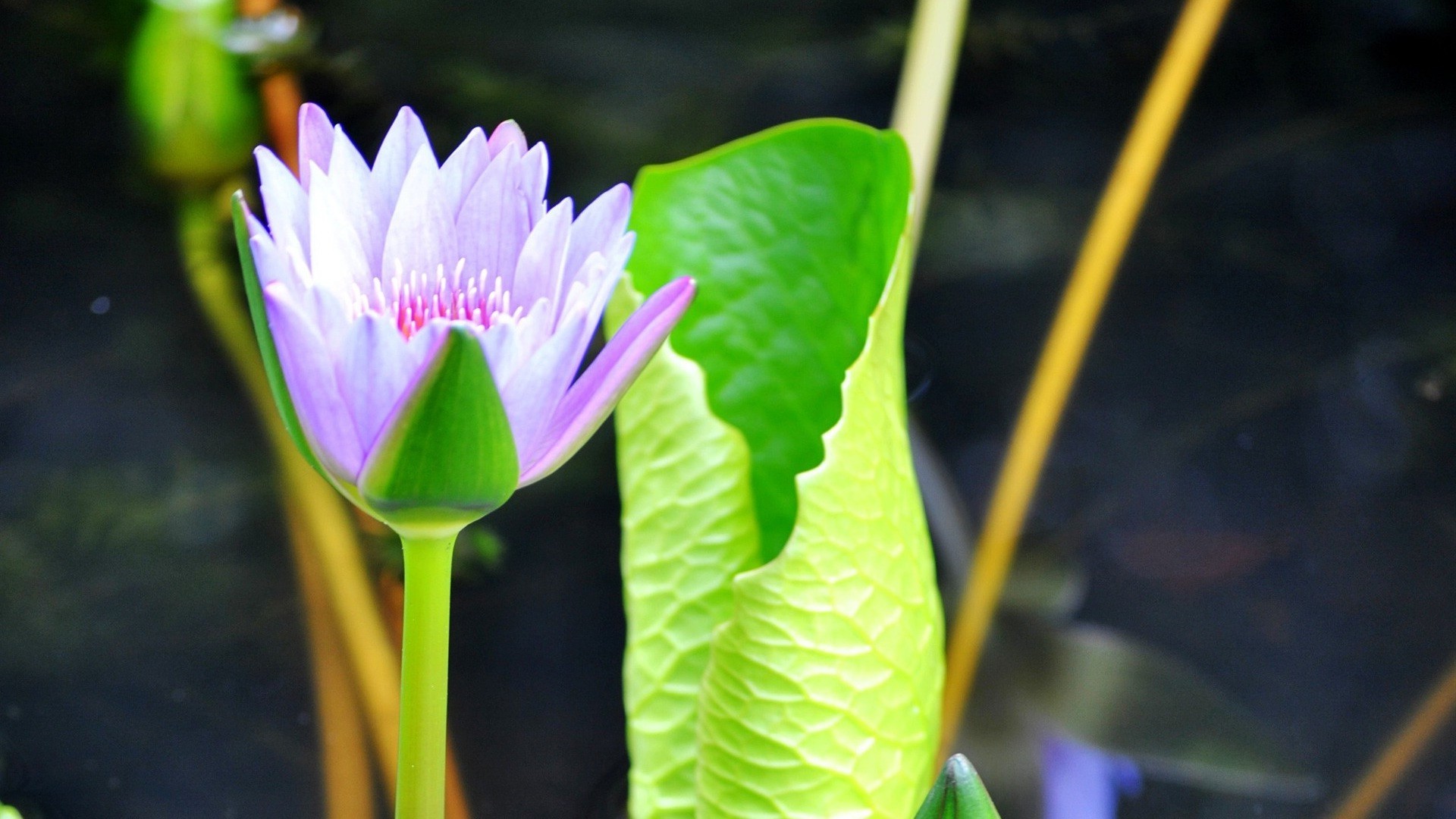 Gocciolina d'acqua sulla foglia rossa del fiore