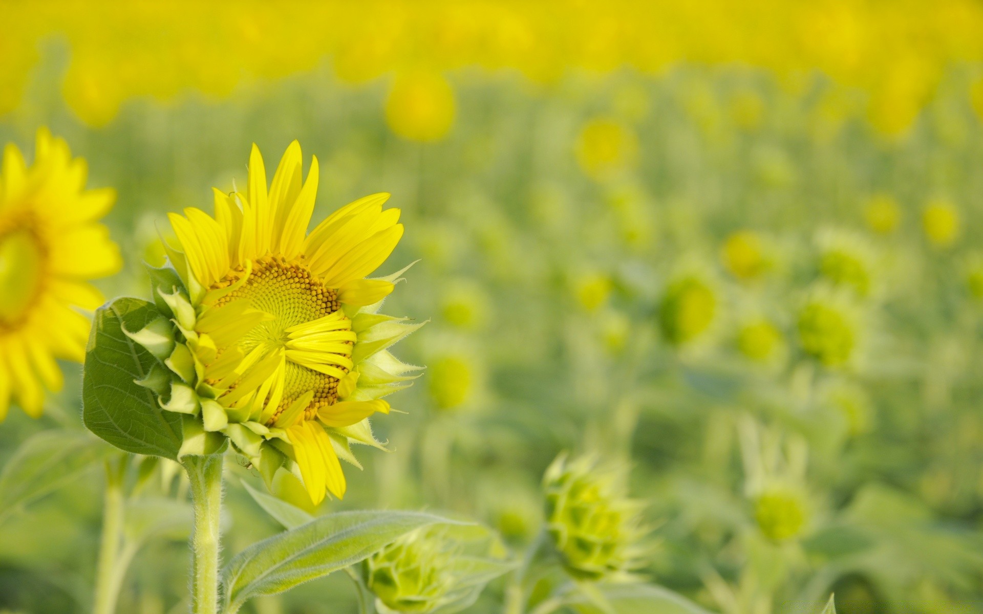Foto di girasoli che iniziano a maturare