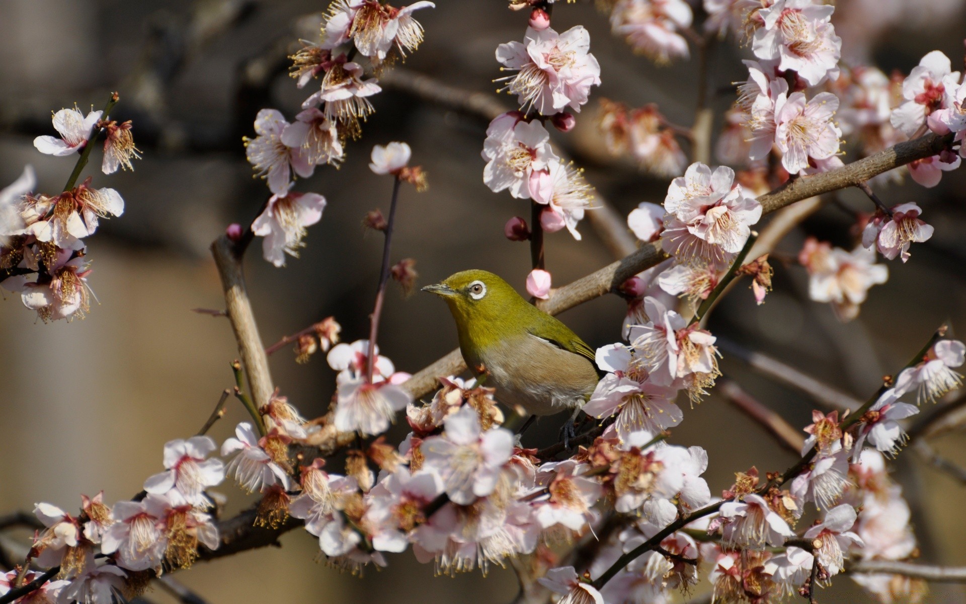 Rametti di Sakura e uccello verde