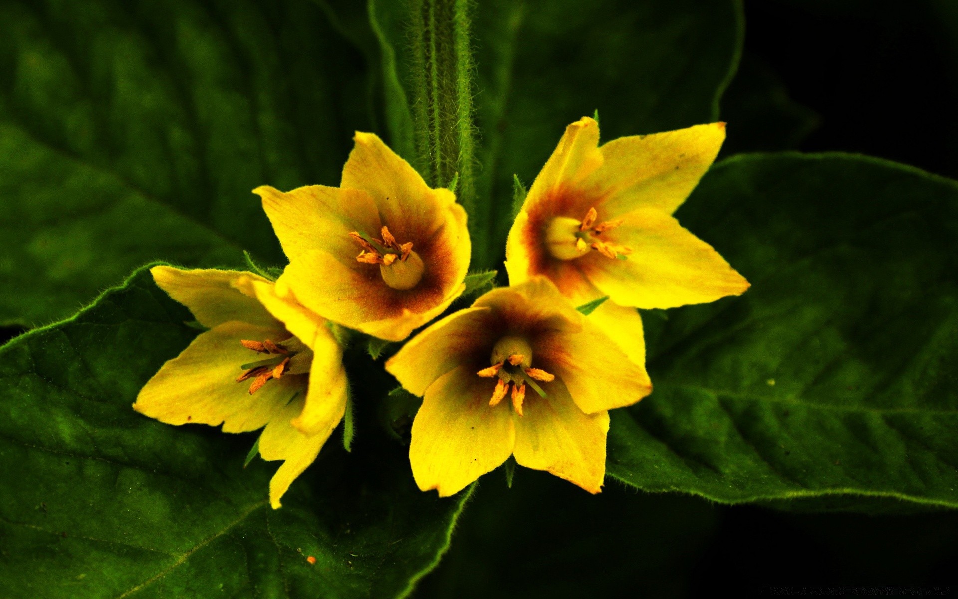 Fiori sotto forma di stivali gialli su un ramo con petali verdi