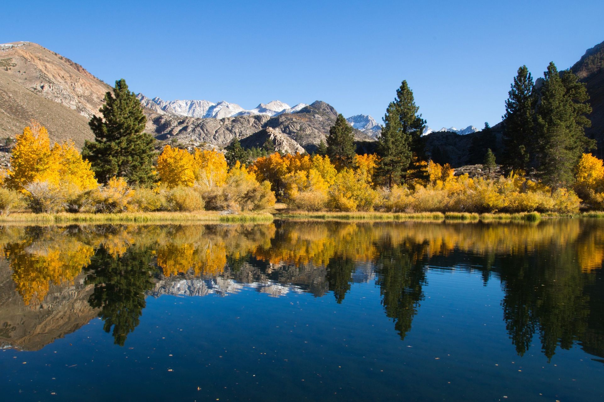 Paesaggio autunnale di alberi che si riflettono nel lago
