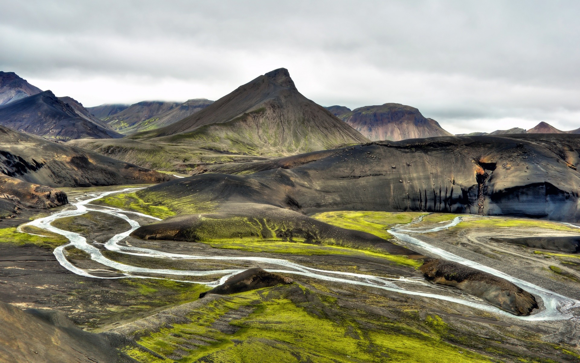 Un fiume tortuoso che scorre attraverso le verdi colline