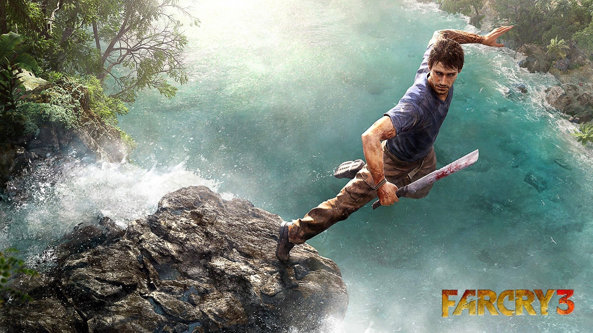 Uomo con Machete che salta sul fiume