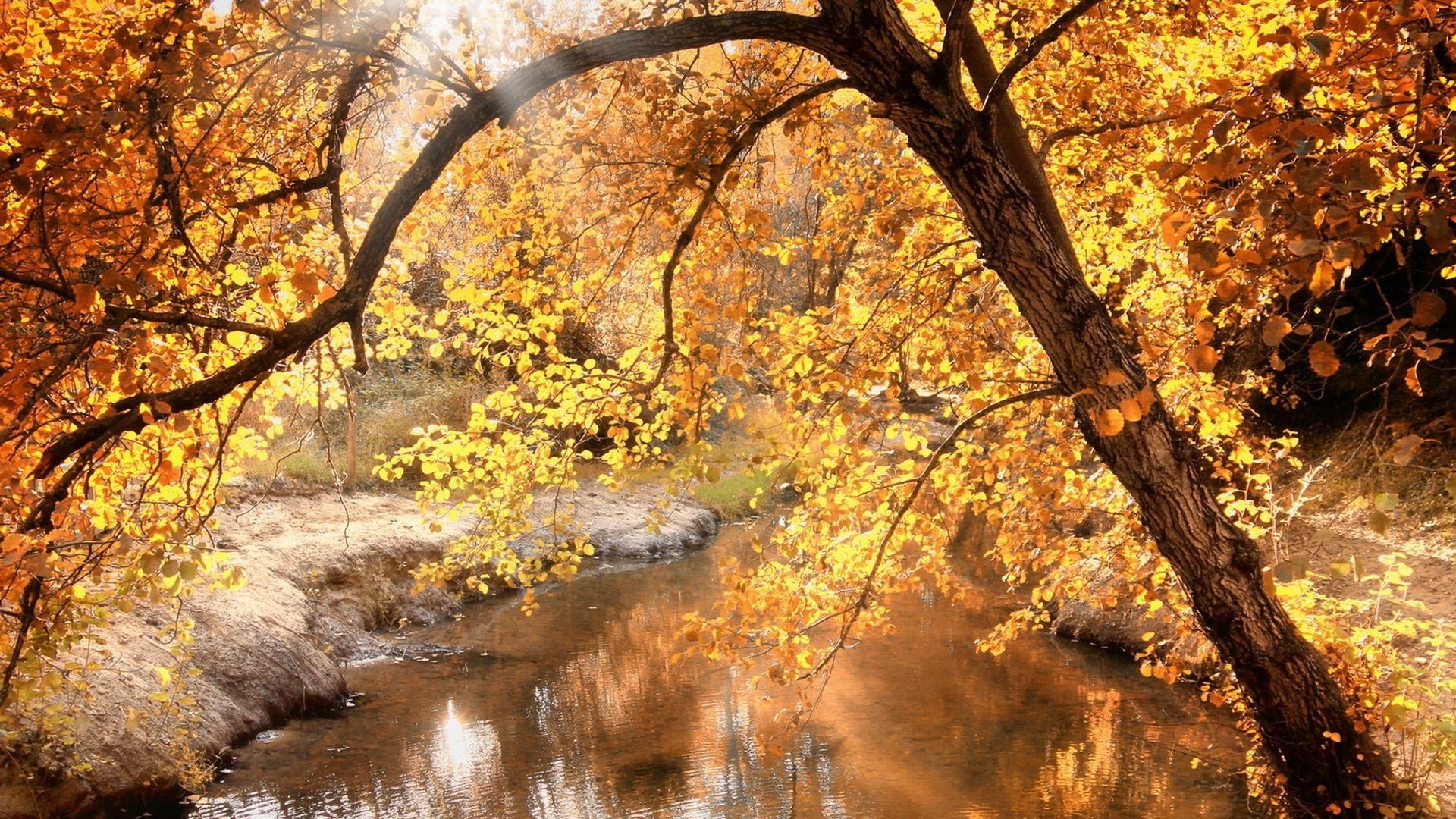 Fiume poco profondo e foresta autunnale