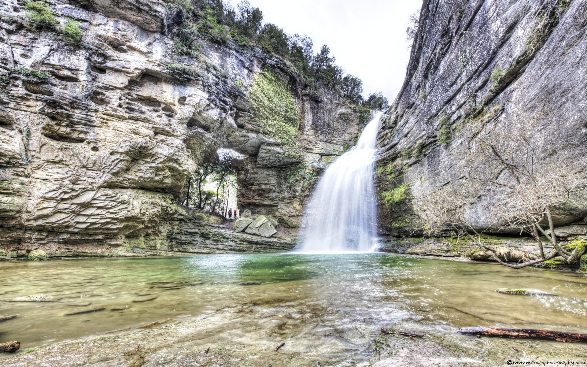 Una goccia cade in una pozzanghera su uno sfondo scuro