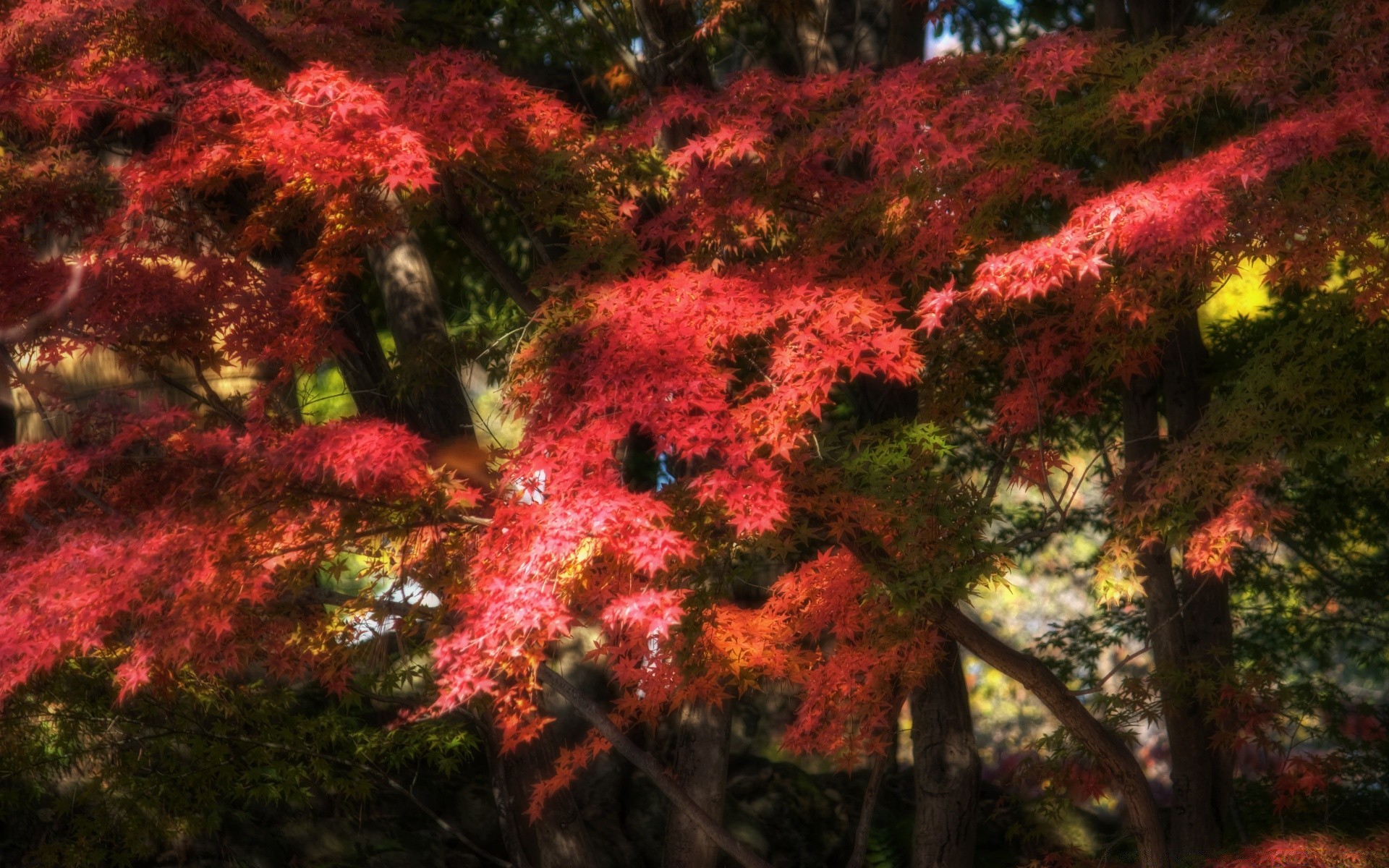 Asfalto coperto di foglie colorate nella foresta autunnale