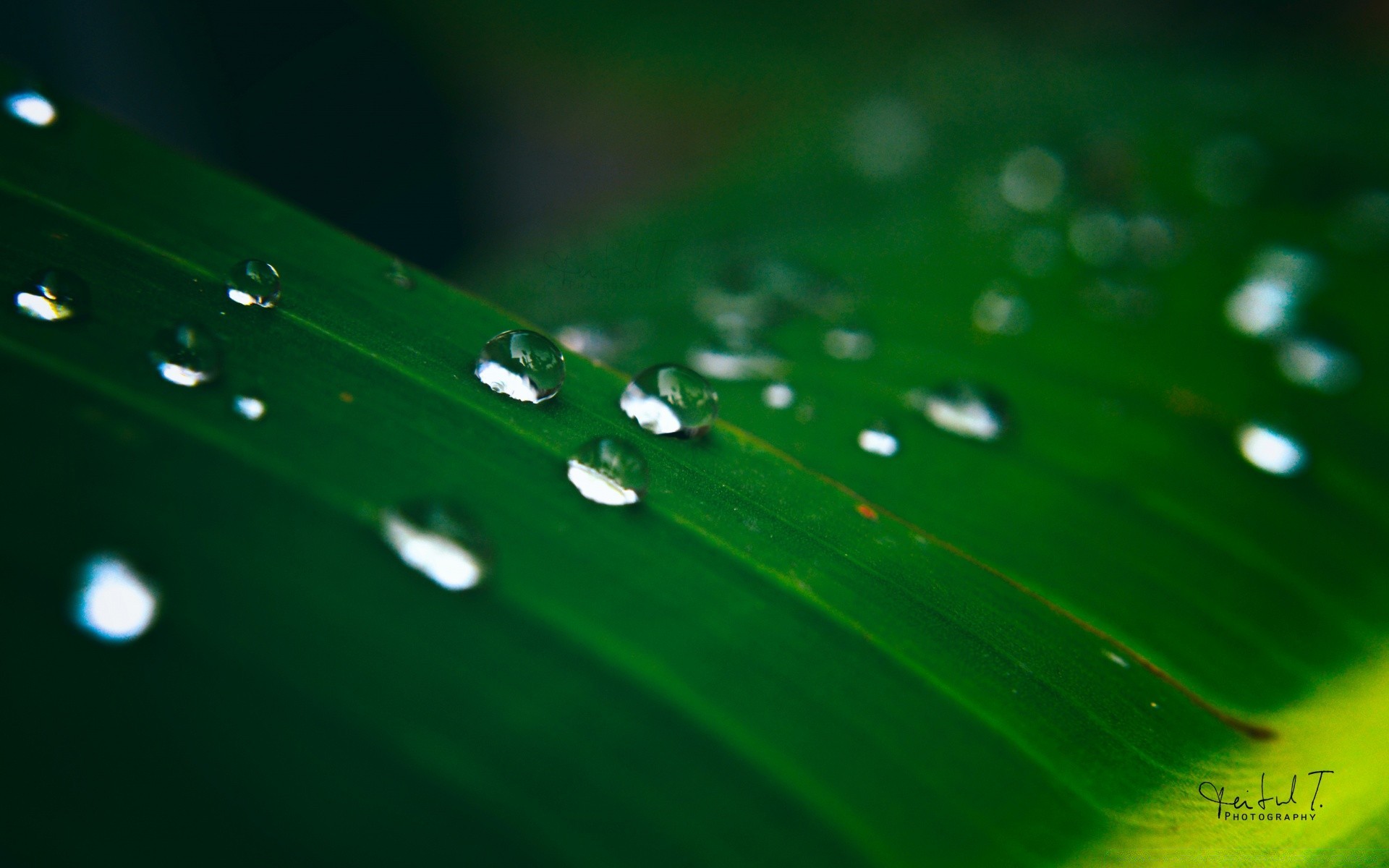 Gocce di pioggia su una foglia venata