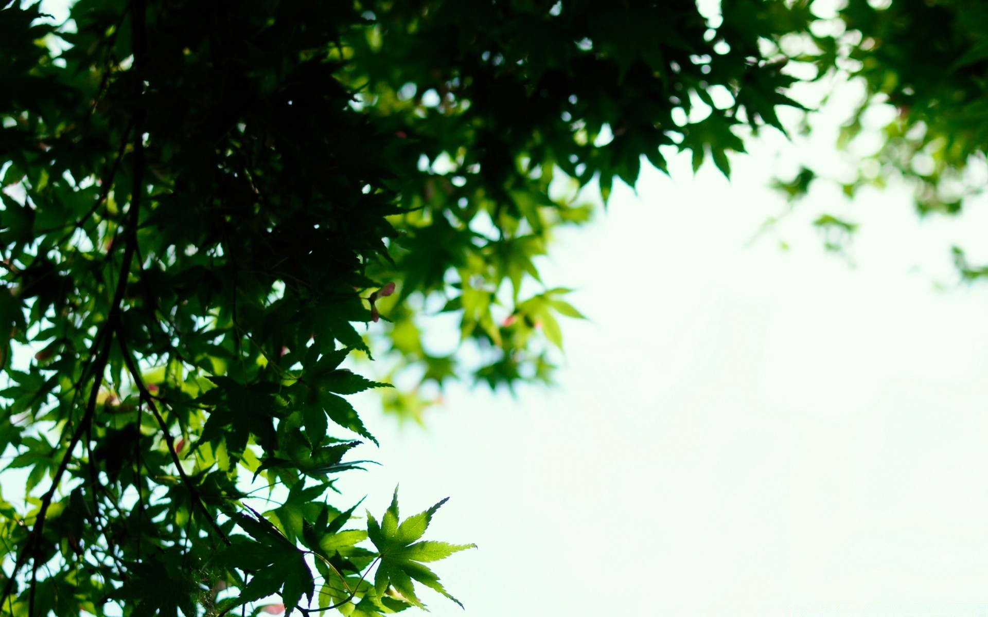 Ramo con foglie verdi su sfondo sfocato