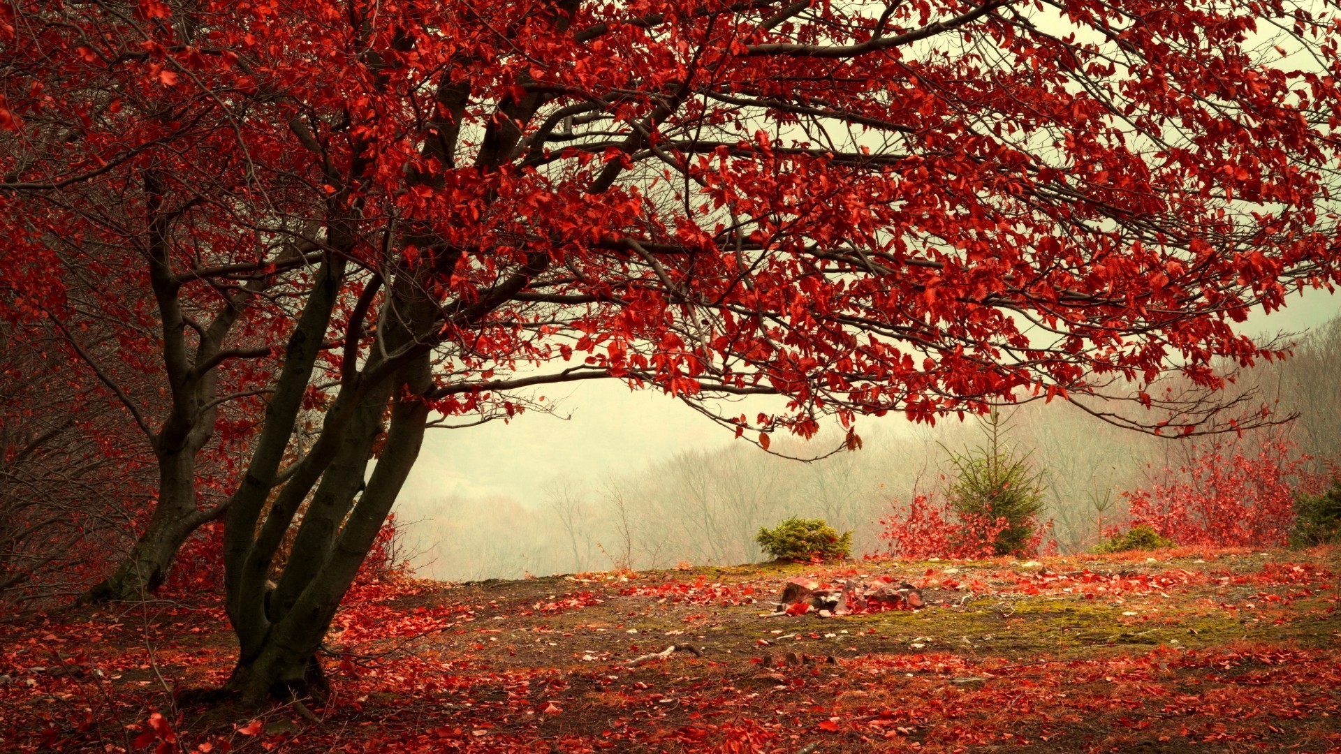Albero autunnale in foglie rosse