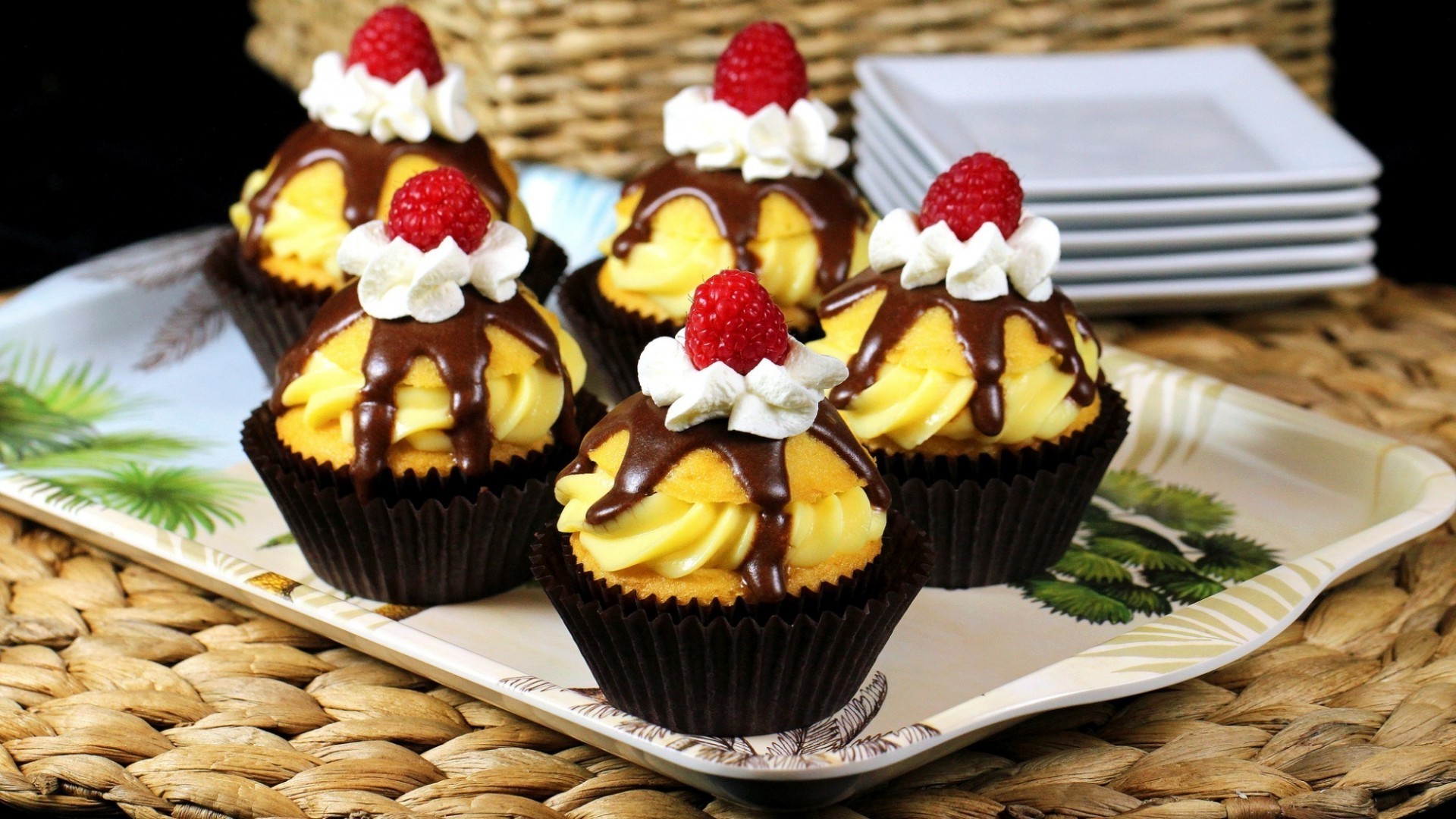 Delizioso dessert con crema dolce cosparsa di cioccolato