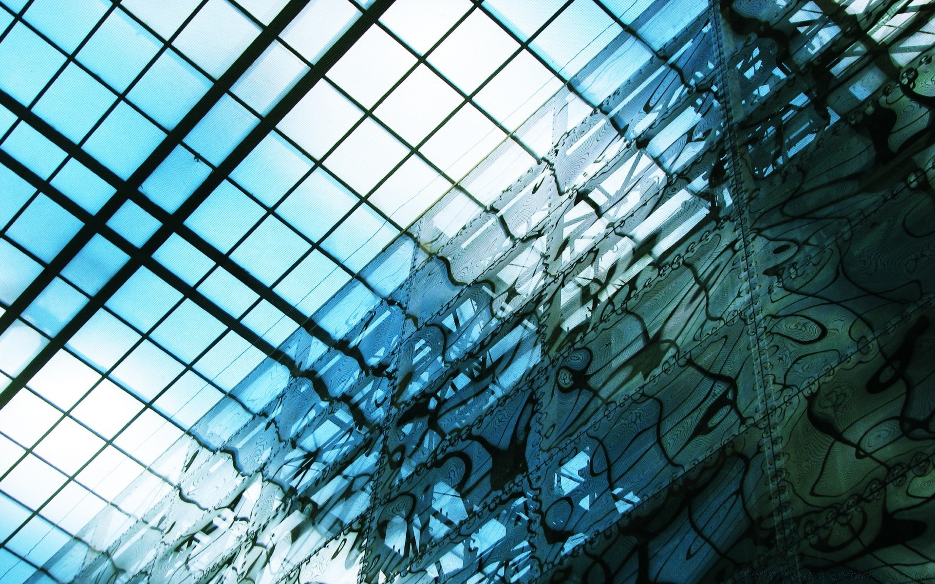 Tetto di vetro su uno sfondo di cielo con nuvole