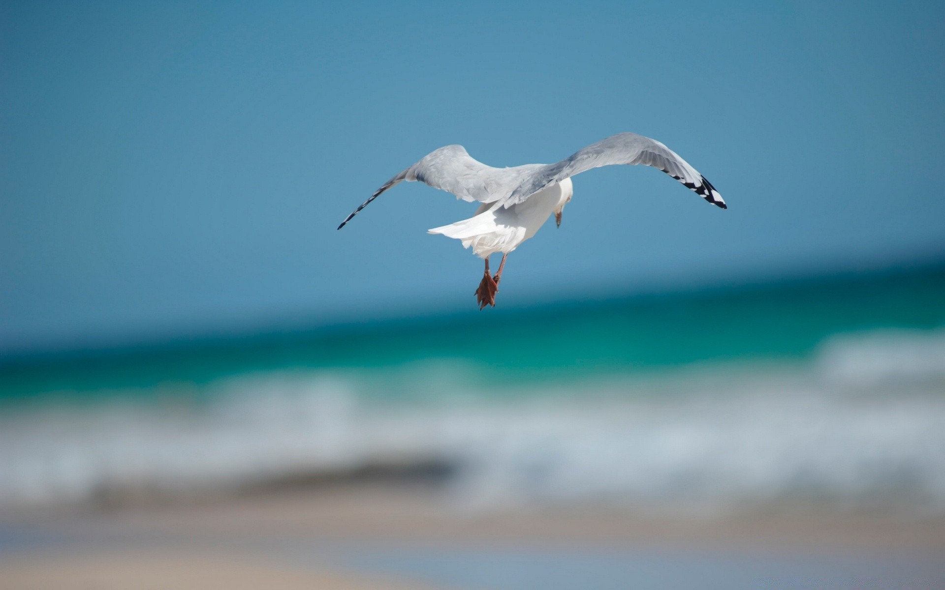 Gabbiano che vola allargando le ali