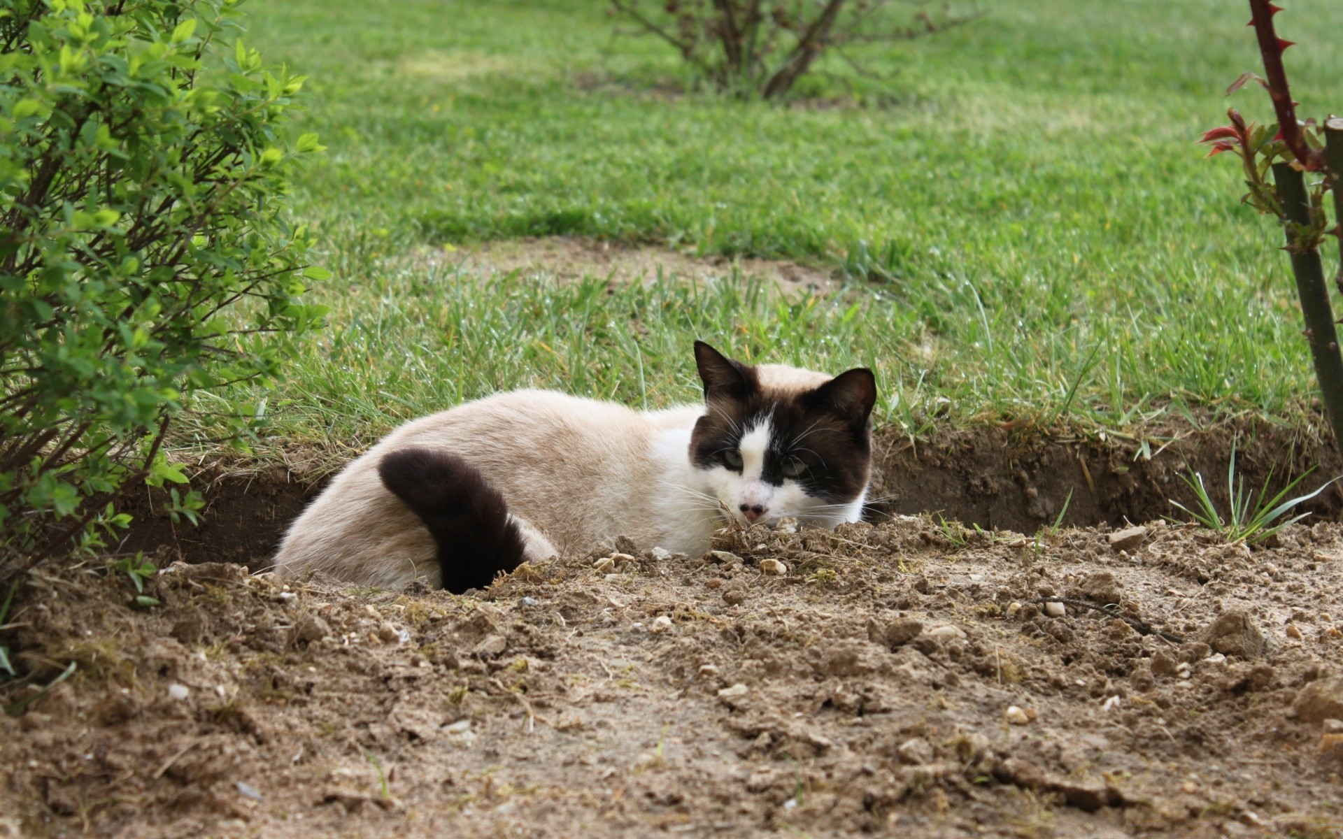 Un gatto purosangue si intrufola nell'erba