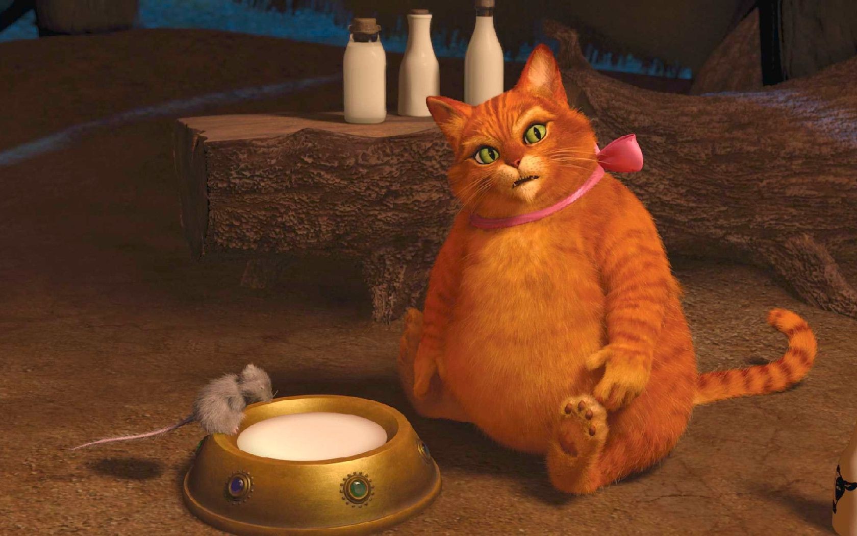 Shrek per sempre gatto uomo grasso lapoul fiocco rossa