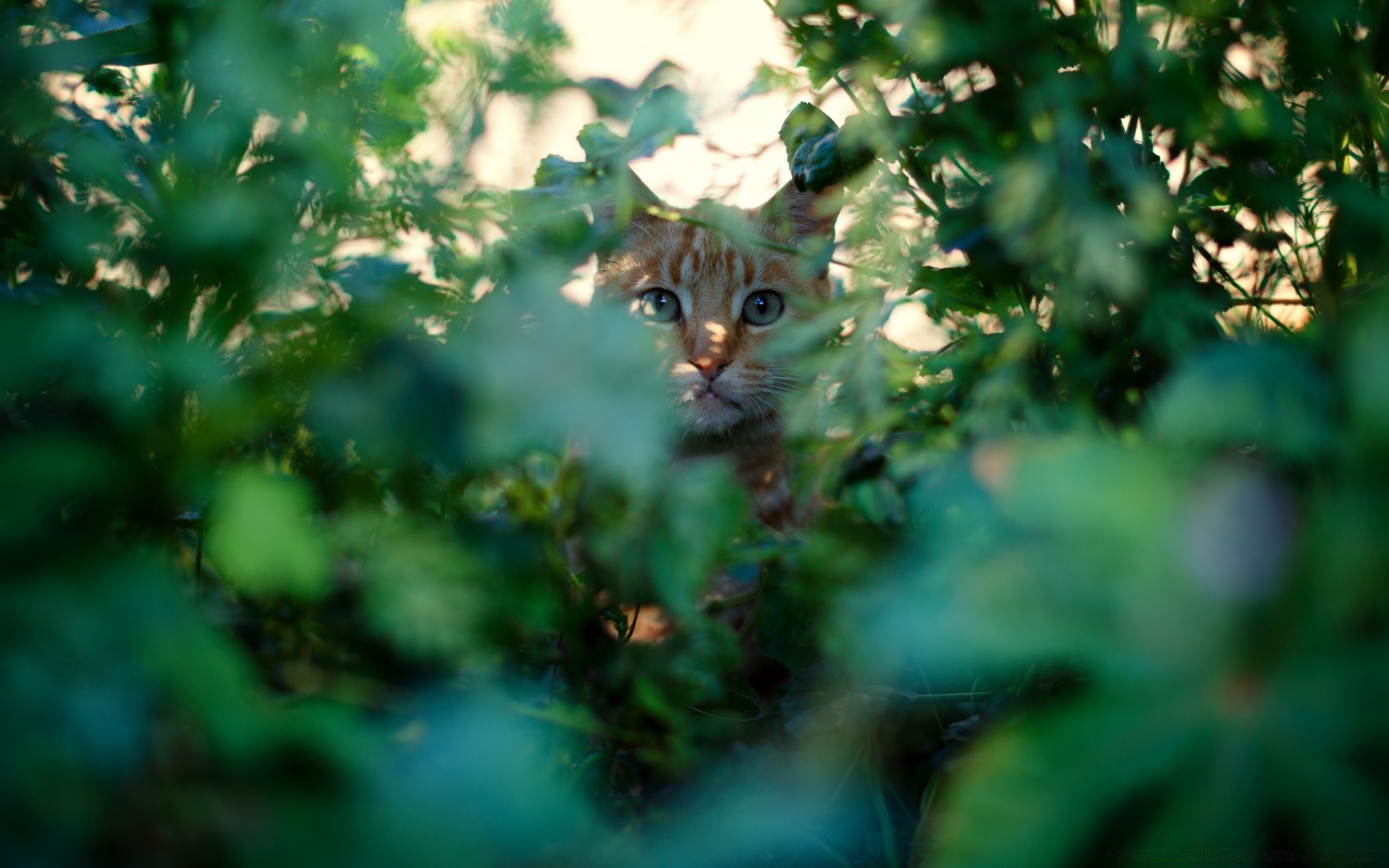 Gatto nascosto nell'erba dal sole