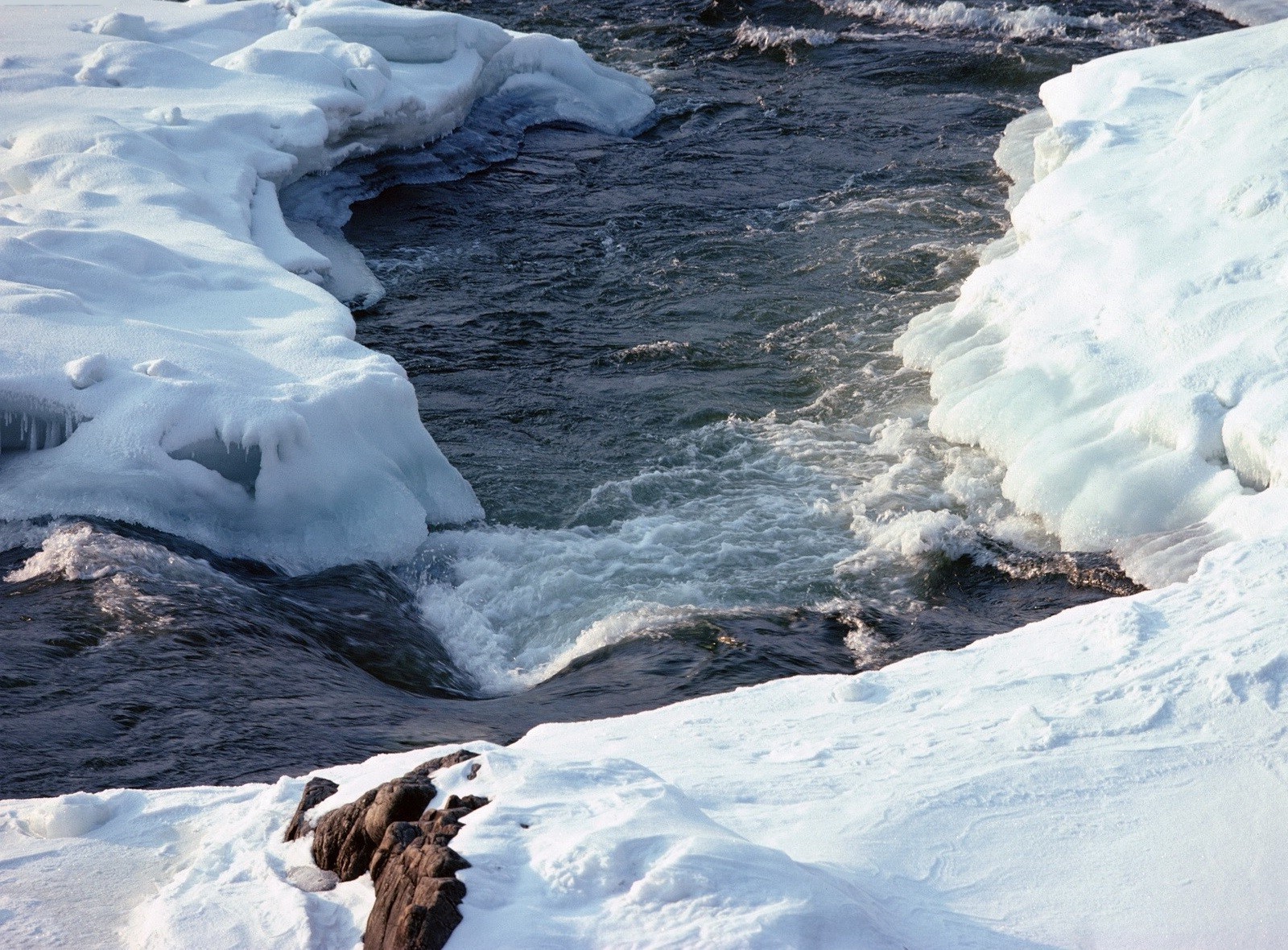 Il torrente ha perforato la strada attraverso il ghiaccio
