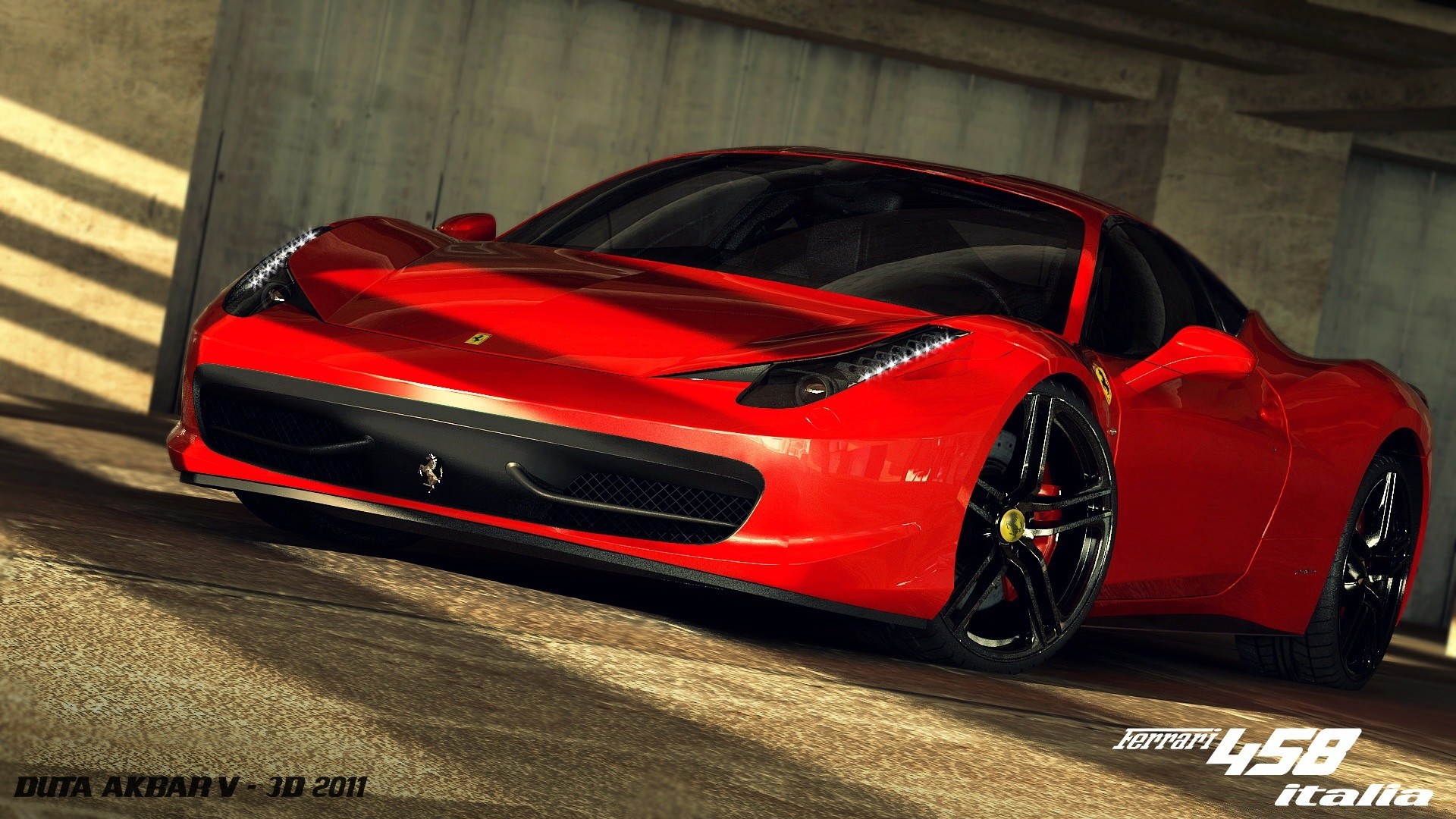 Auto rossa vicino al palazzo in città ai piedi della montagna