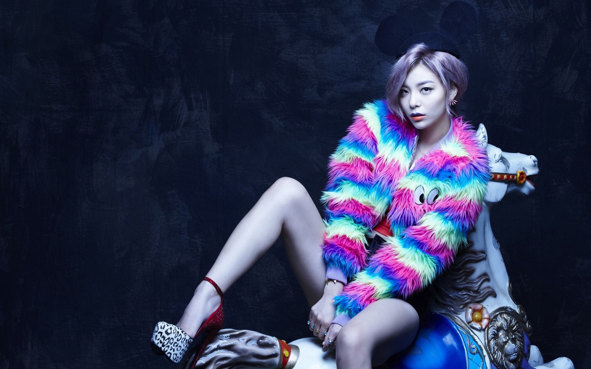 Bella ragazza in occhiali da sole giacca nera e gonna rosa