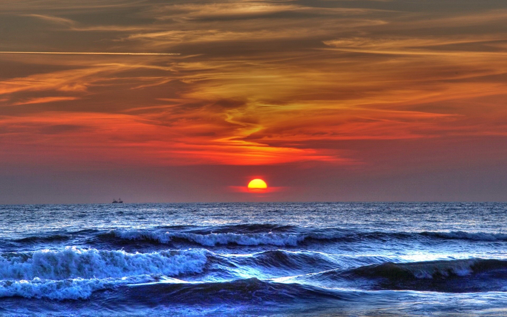 Sole giallo al tramonto nell'oceano