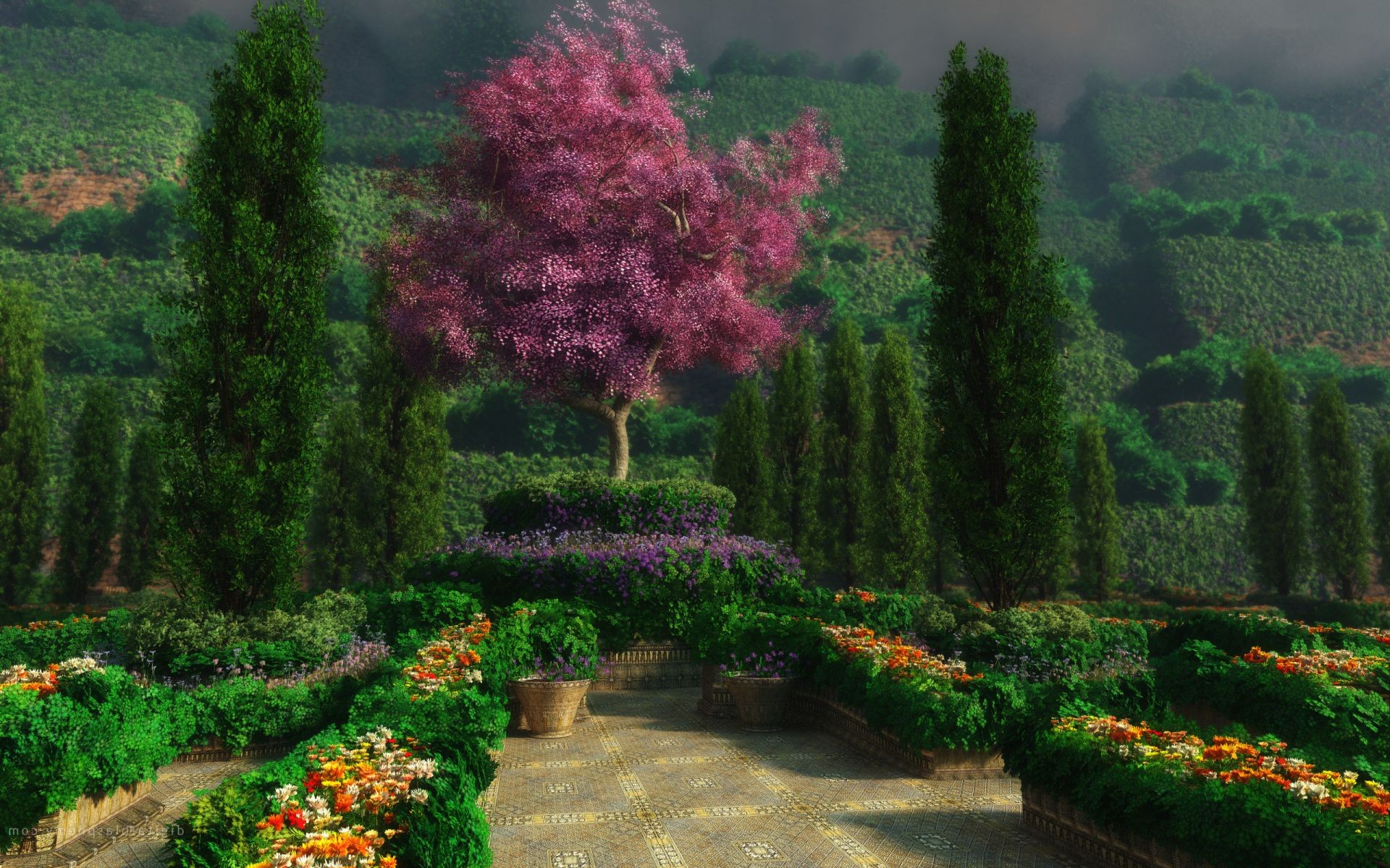Giardino magico con alberi ben tagliati