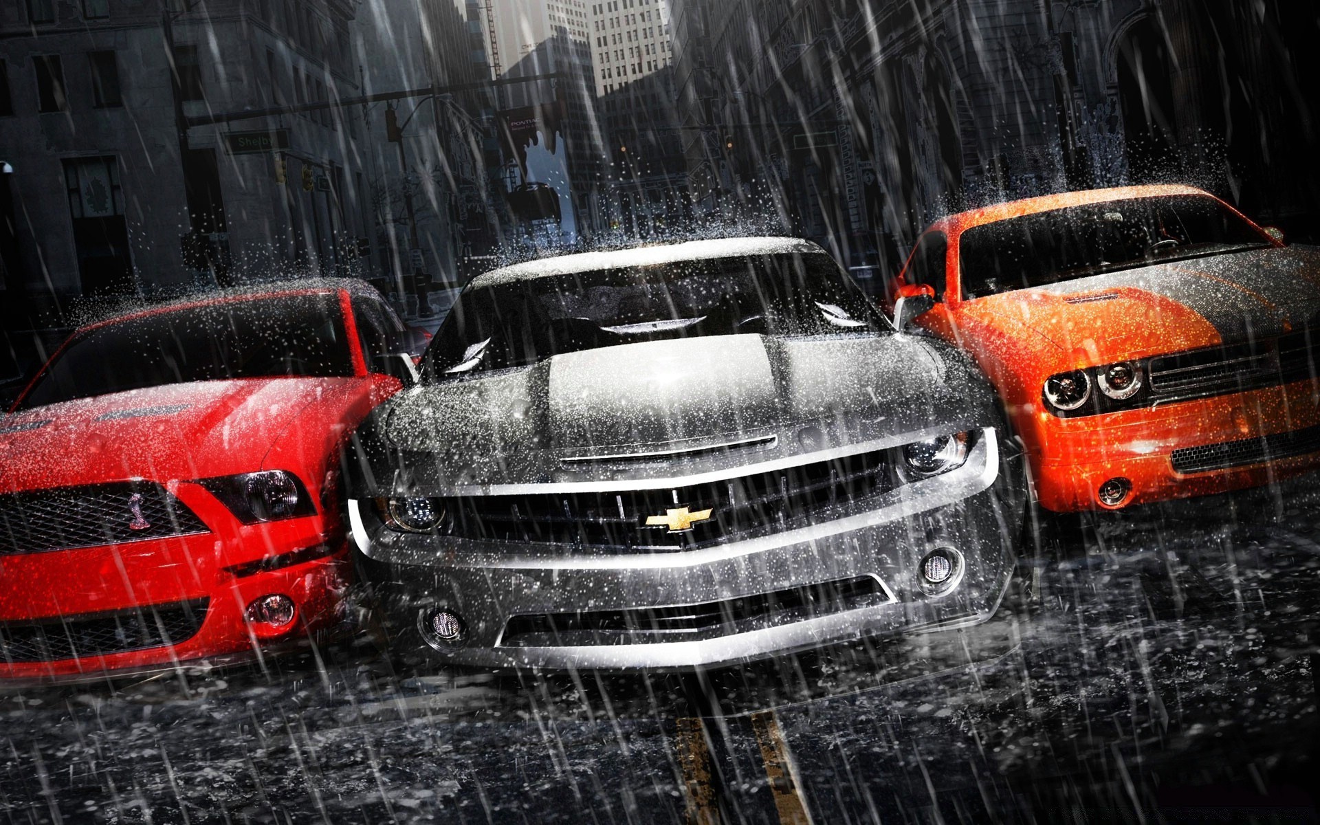 Auto in città sotto la pioggia