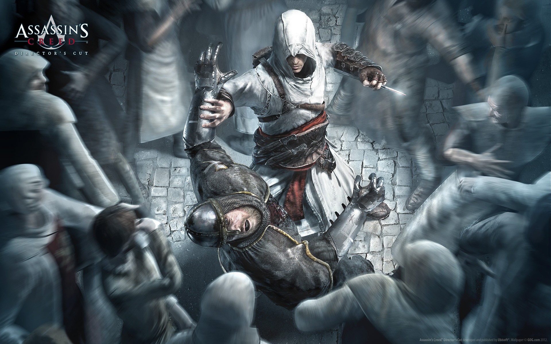 Il personaggio principale del gioco assassin's creed incappucciato di profiloIl personaggio principale del gioco assassin's creed incappucciato di profilo