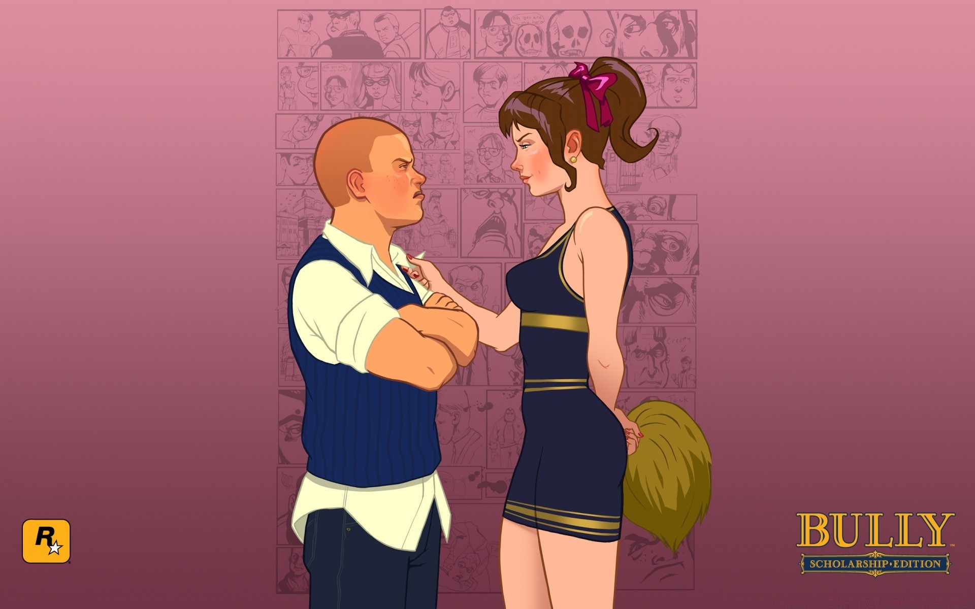 Ragazza cheerleader e ragazzo scolaro a rockstar games