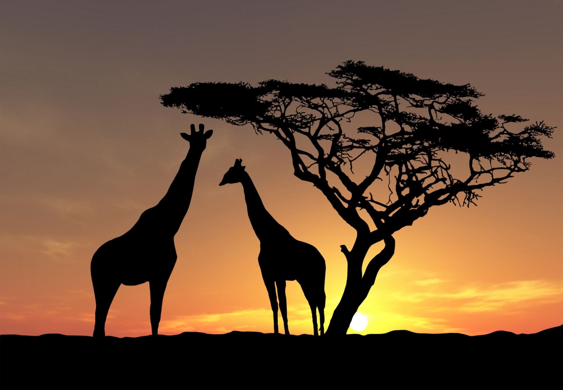 Bellissimo cielo blu scuro. Paesaggio. Animali nel deserto