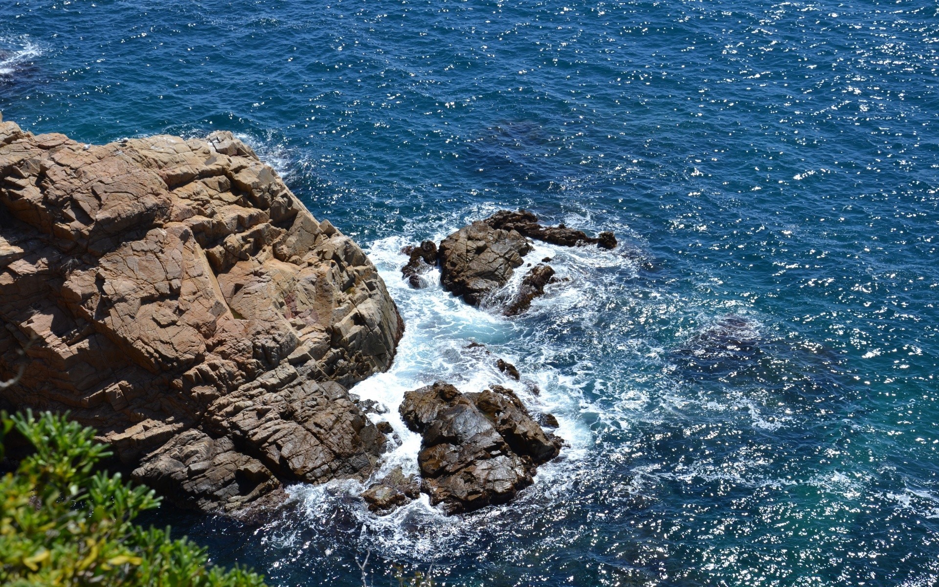 Sottili getti di cascata lavano gli alberi sul fianco della montagna