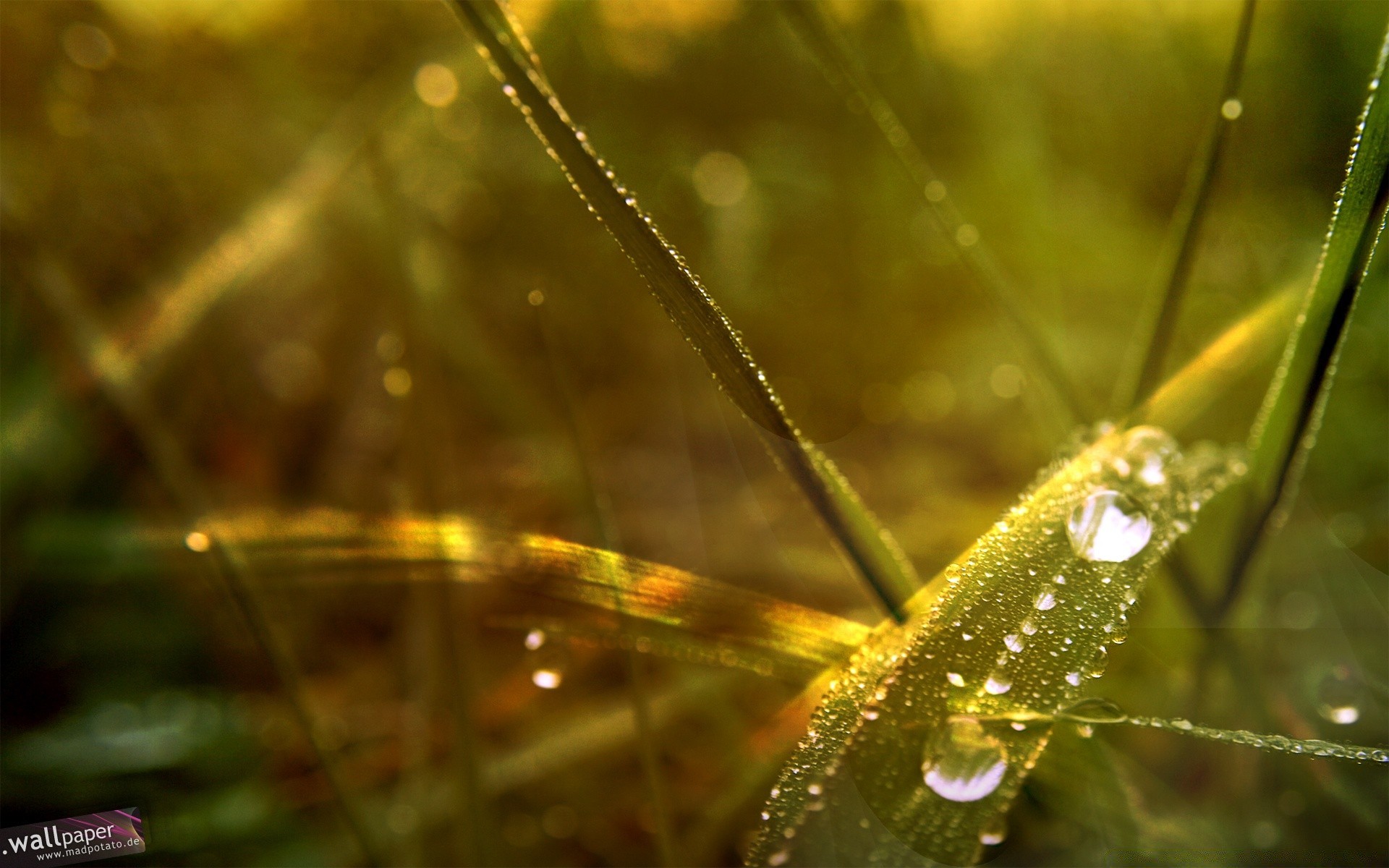 Gocce di rugiada sull'erba ai raggi del sole