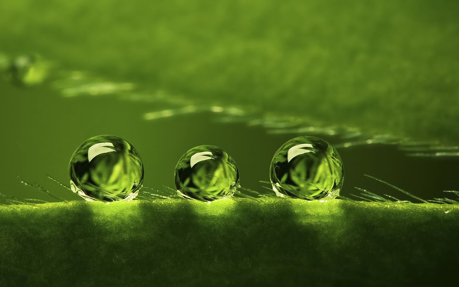 Fotografia macro di erba in un prato verde cosparso di gocce di rugiada