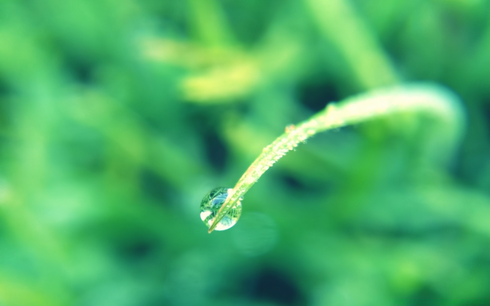 Fotografia macro. Rugiada. Goccia di gocce d'erba