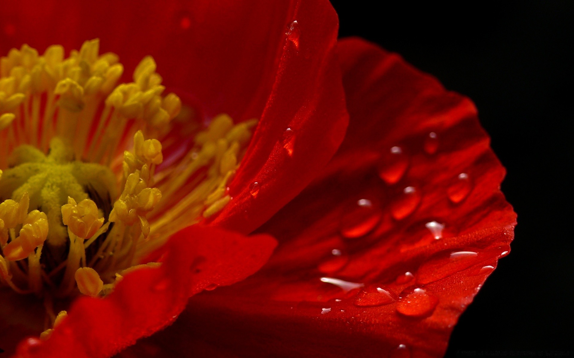Gocciolina d'acqua sulla foglia rossa del fiore
