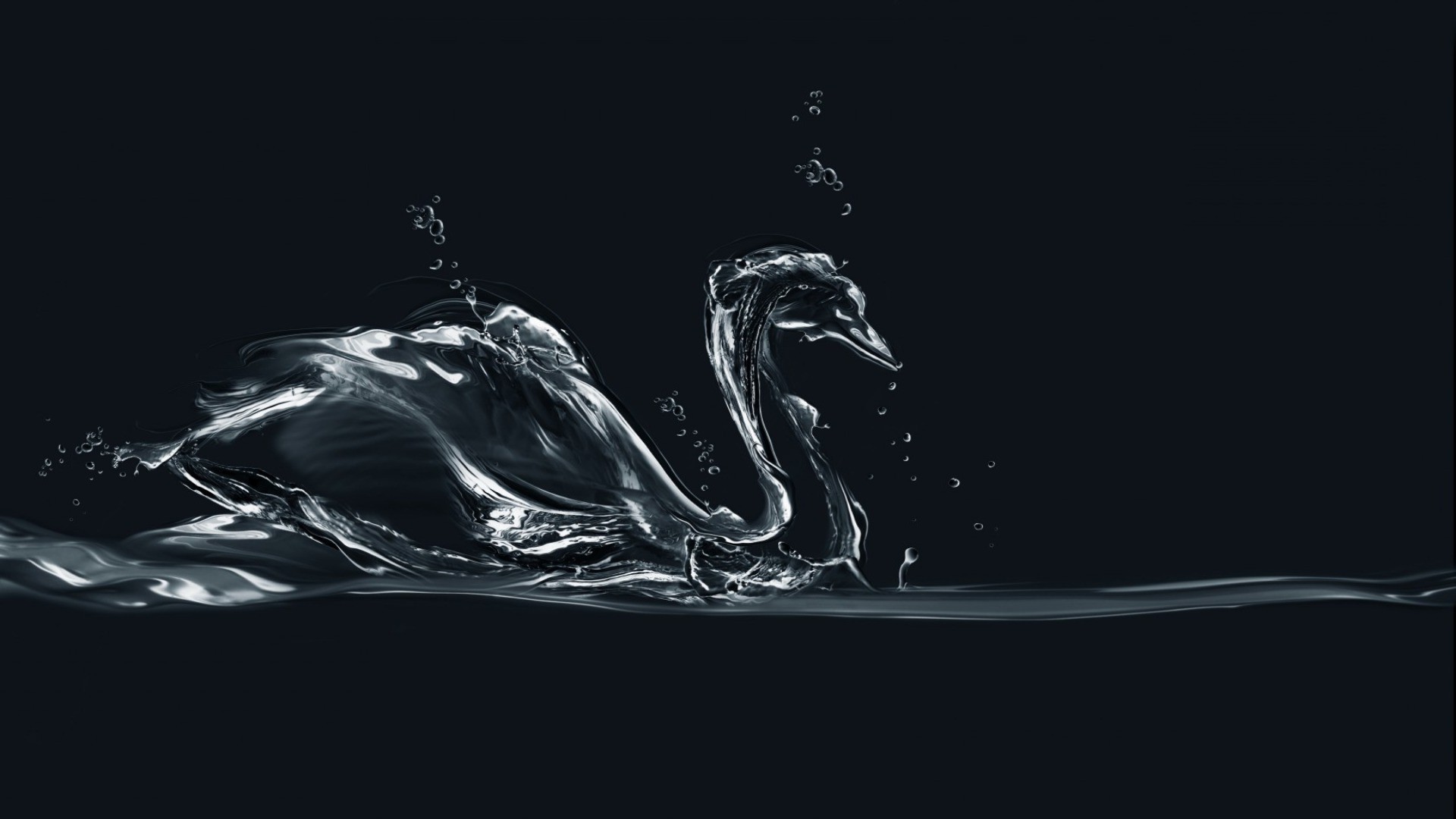 Grafica 3D acqua e rocce sullo sfondo dell'alba