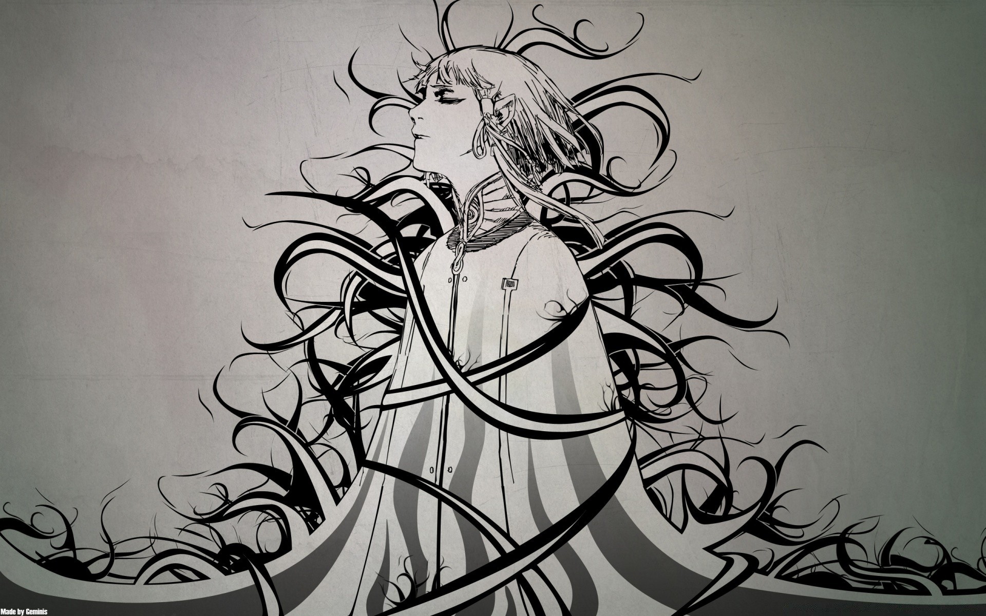 Illustrazione di una ragazza in tatuaggi sulle braccia