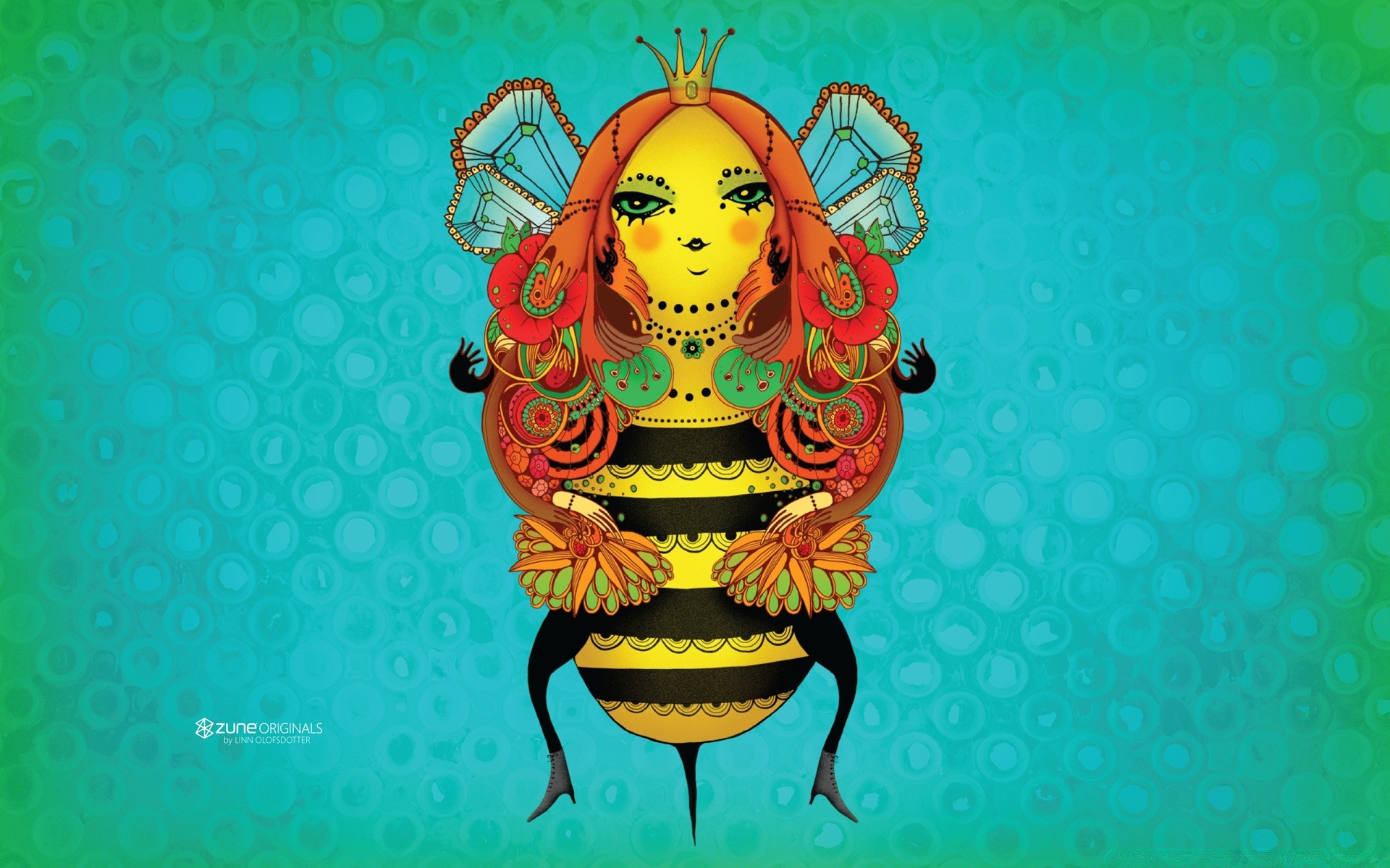 Illustrazione del desktop con l'immagine di una ragazza e un uccello