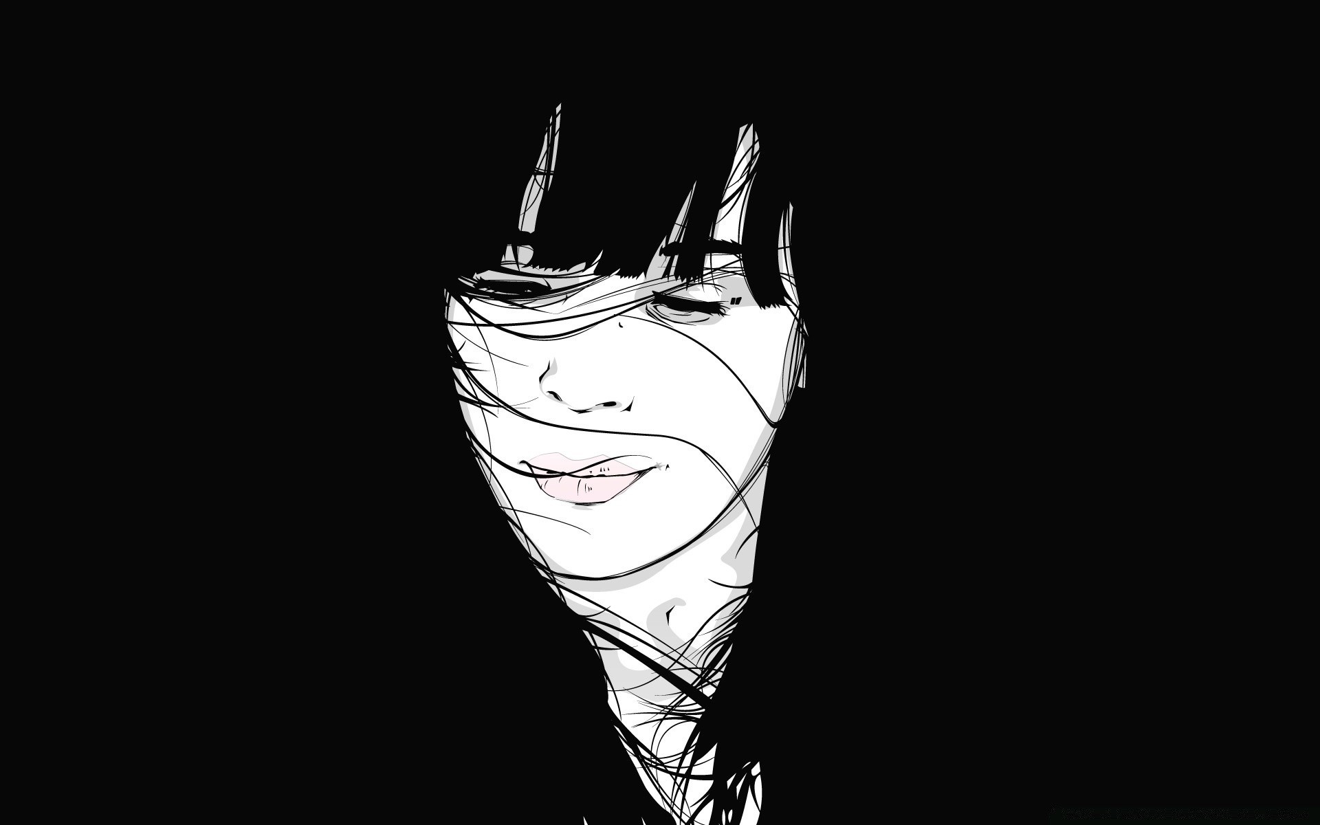 Illustrazione in bianco e nero con una bella ragazzaIllustrazione in bianco e nero con una bella ragazza