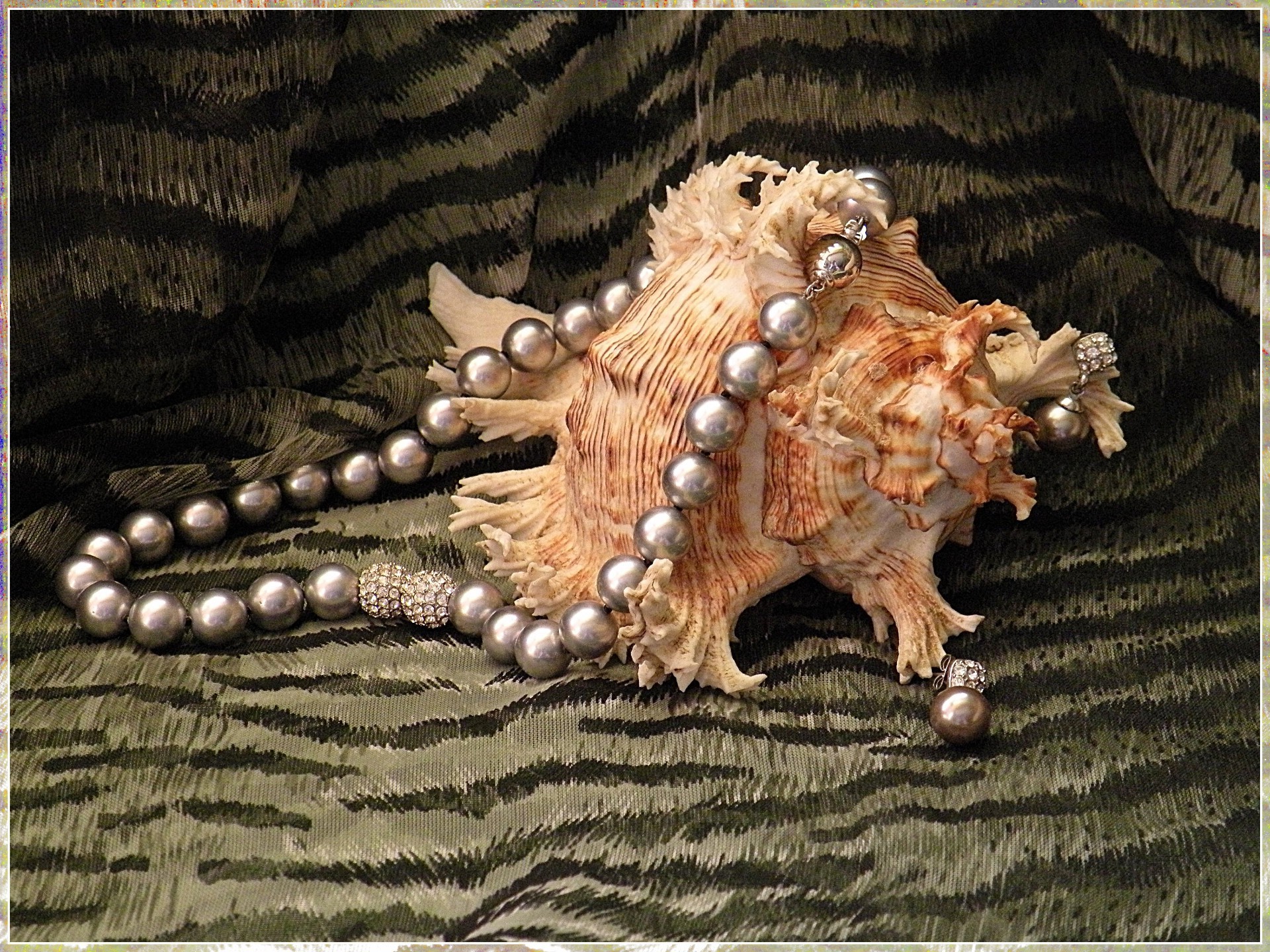Doni del mare. Collana di perle e grande conchiglia