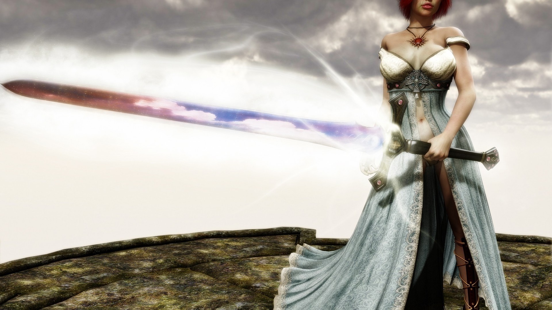 Guerriera con una grande spada nel campo