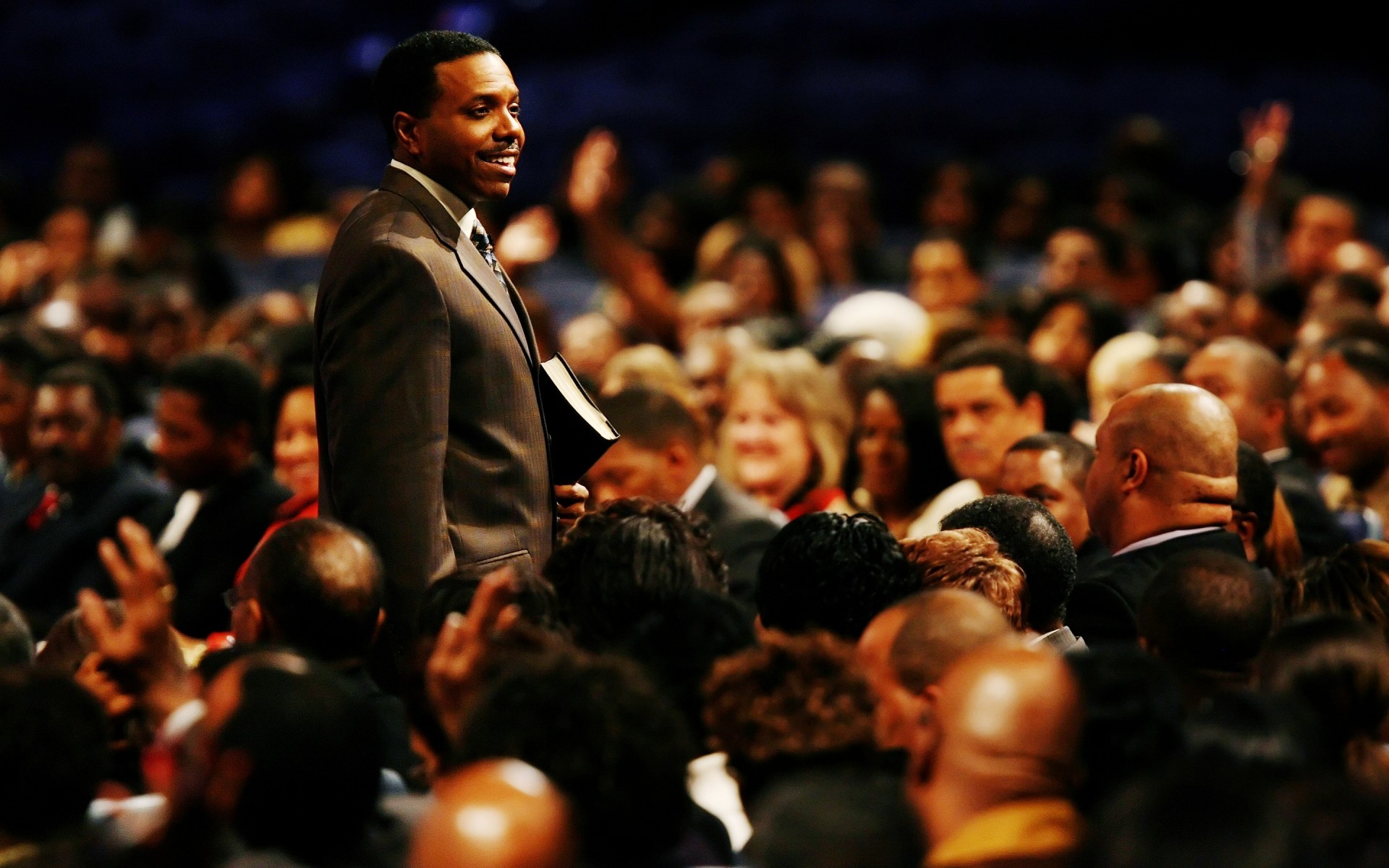 Un uomo incappucciato, spinto negli occhi, cammina per la città vecchia