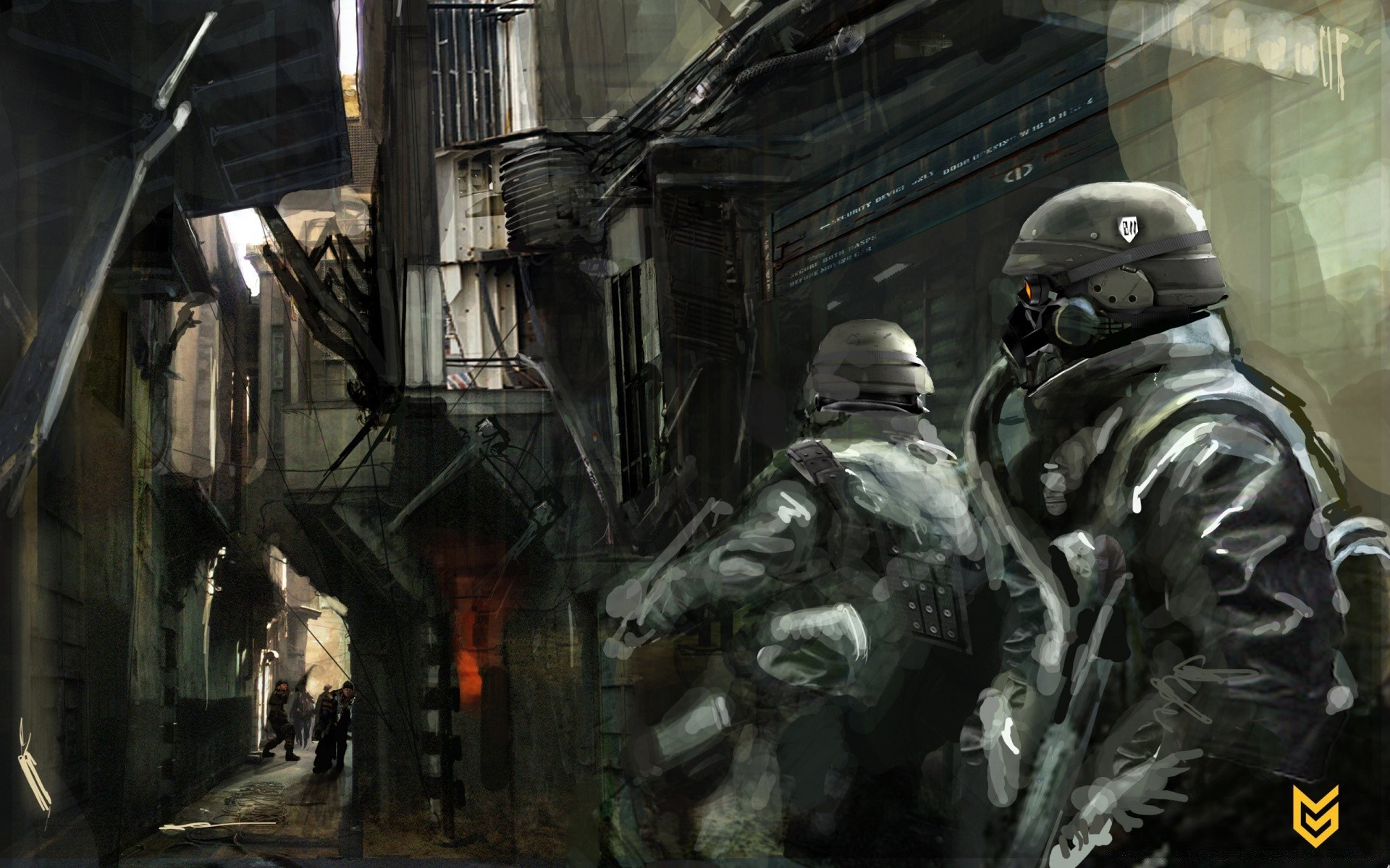 Militare con una maschera sul viso con gli occhi ardenti in allerta