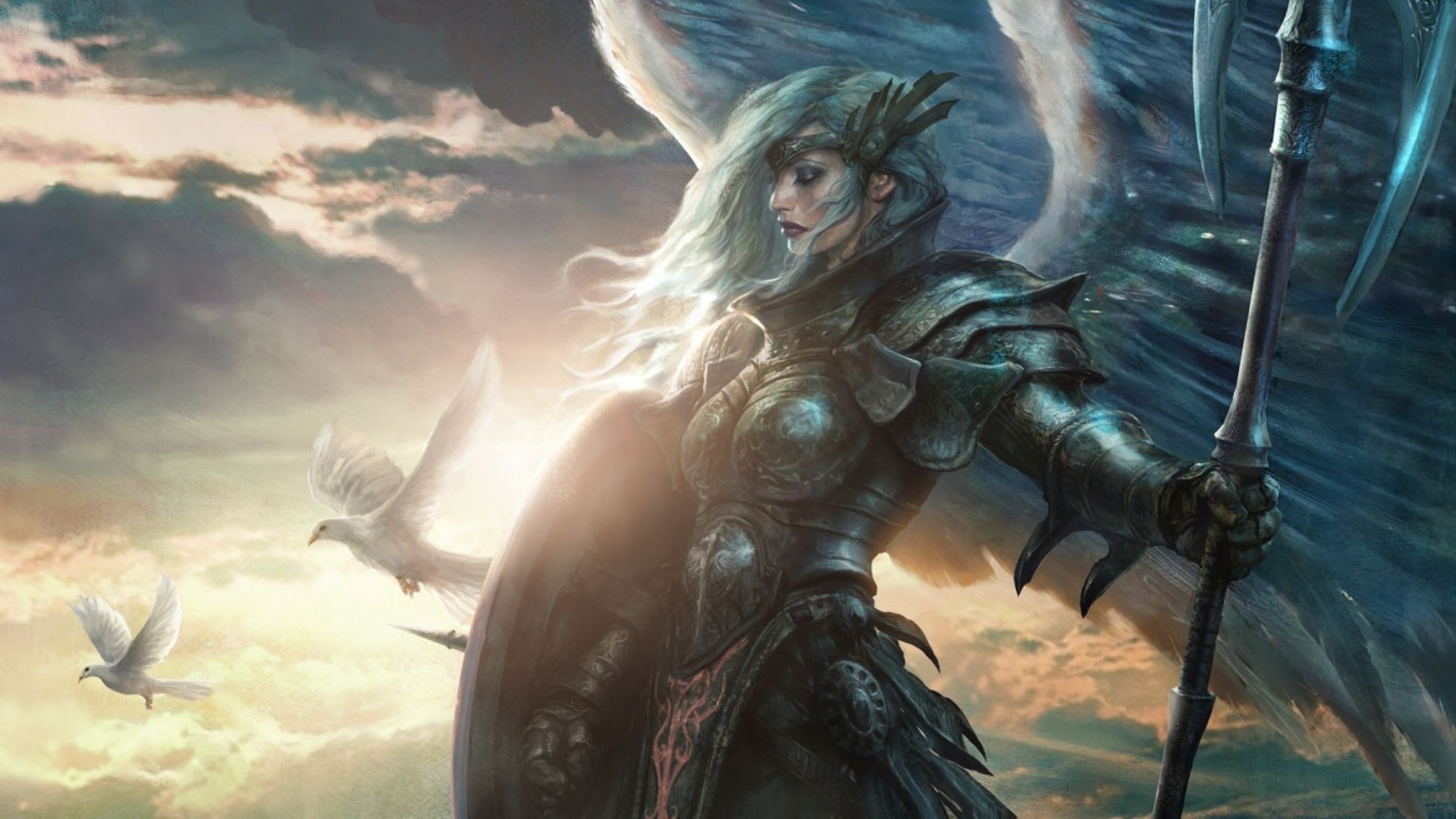 Bella ragazza cammina sulla sabbia sullo sfondo del tramonto