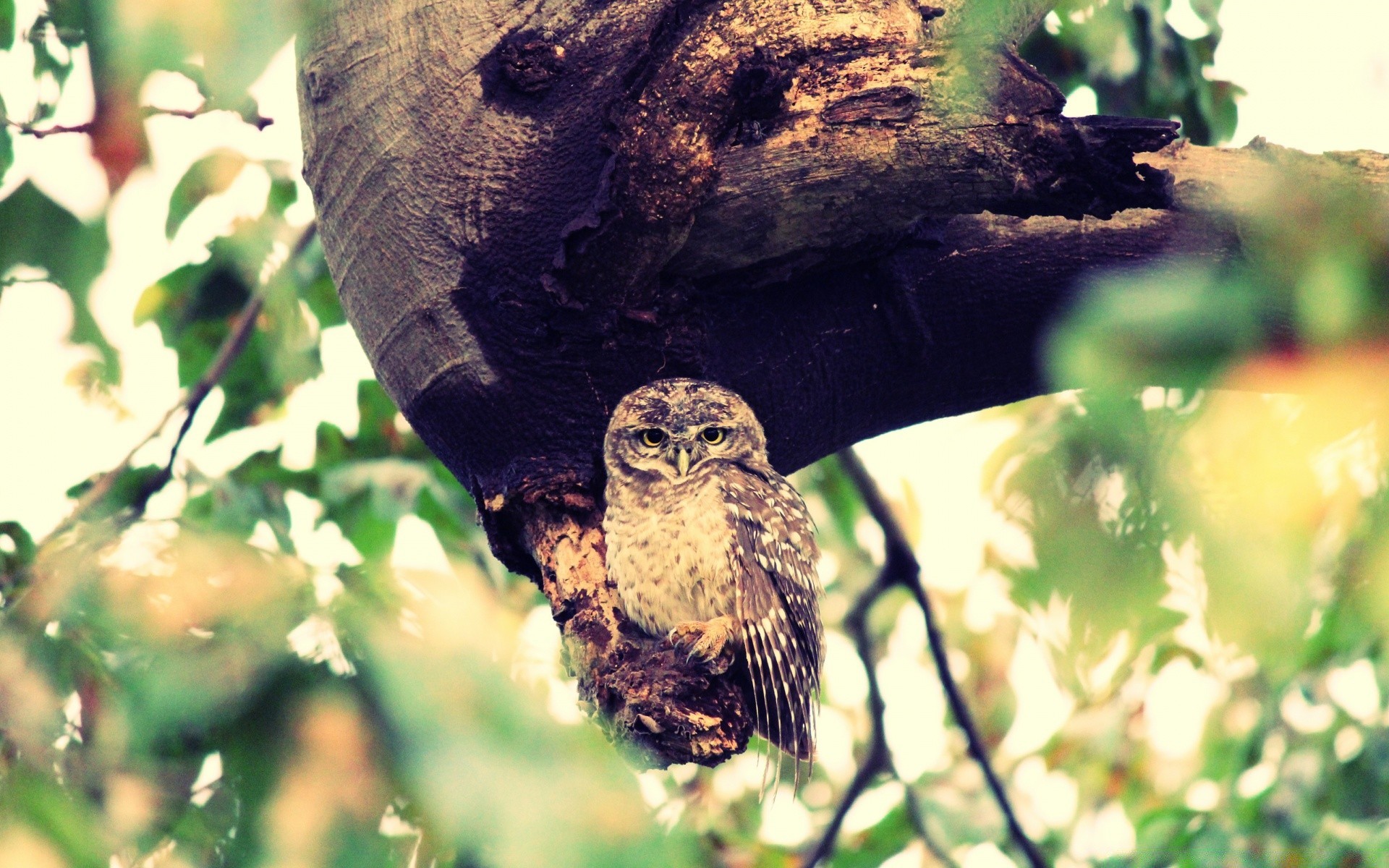 Gufo seduto su un moncone e parlando con un topo nel mezzo della foresta notturna